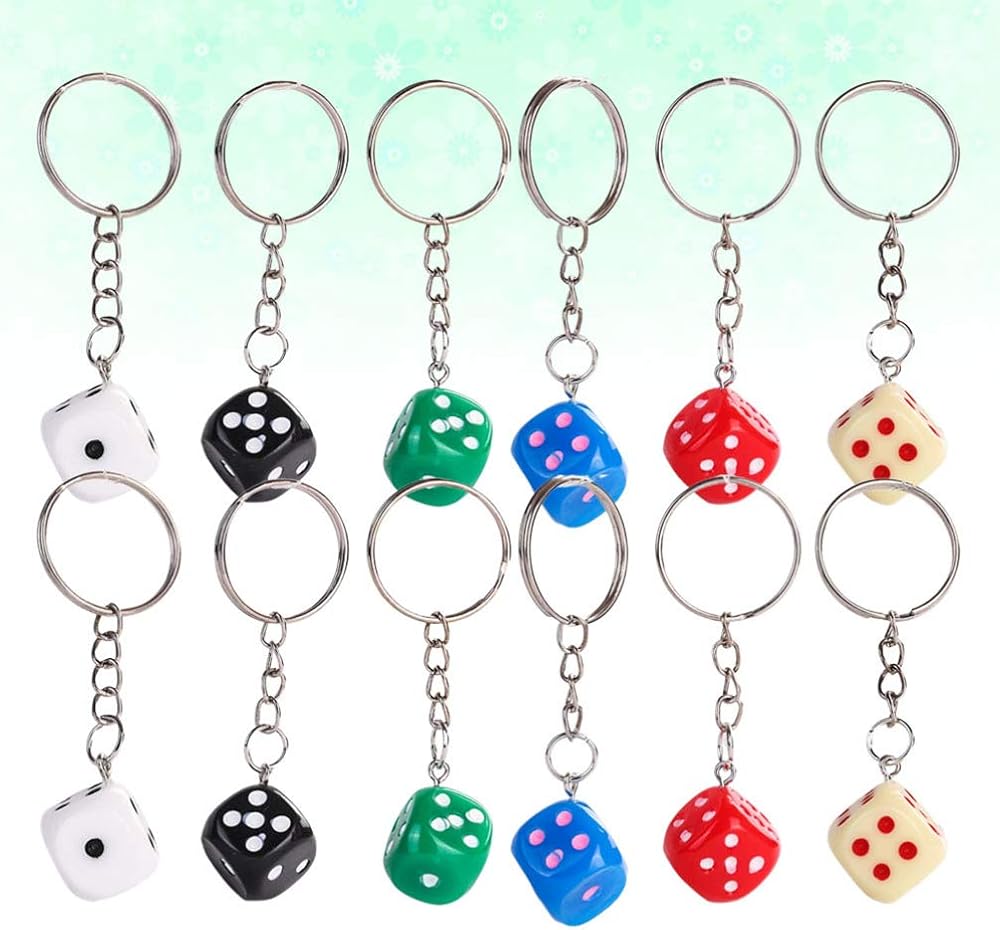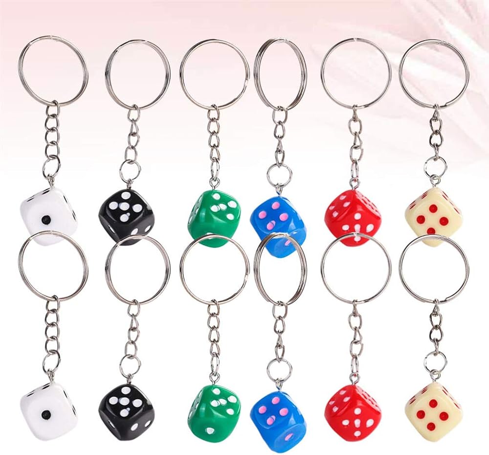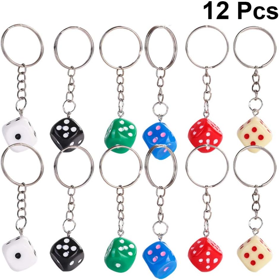 12pcs Dice Keychain Creative Key Holder Keychains for Fathers Birthday (Mixed Colors)