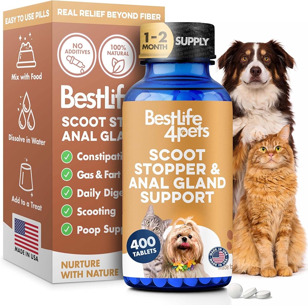 SCOOT STOP FOR DOGS: End the straining and pushing to poop with a natural solution that goes deeper than just a lax fiber or pumpkin chew. The BestLife4Pets Anal Prolapse remedy, eases bum itching and reduces swelling around the anus allowing the dog to poop without pain.