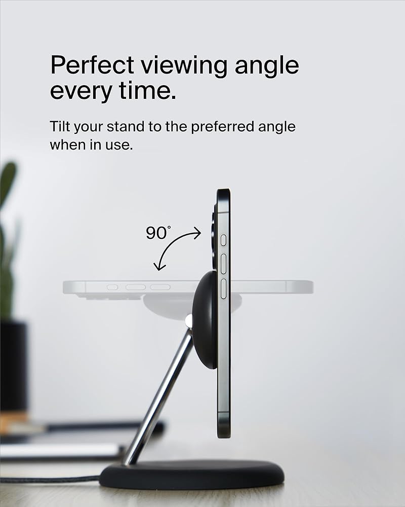 STANDBY READY: Apple users can enjoy StandBy Ready features when this magnetic charger is in stand mode. Adjust to your favorite screen and get a clear visual of the time in your office, a hotel room, or wherever you may go.