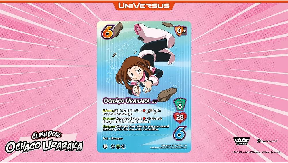 Excite new players with two brand new Clash Decks featuring Ochaco Uraraka and Himiko Toga! Each display contains eight ready to play Clash Decks for the MY HERO ACADEMIA COLLECTIBLE CARD GAME and serve as a great entry point for new players!