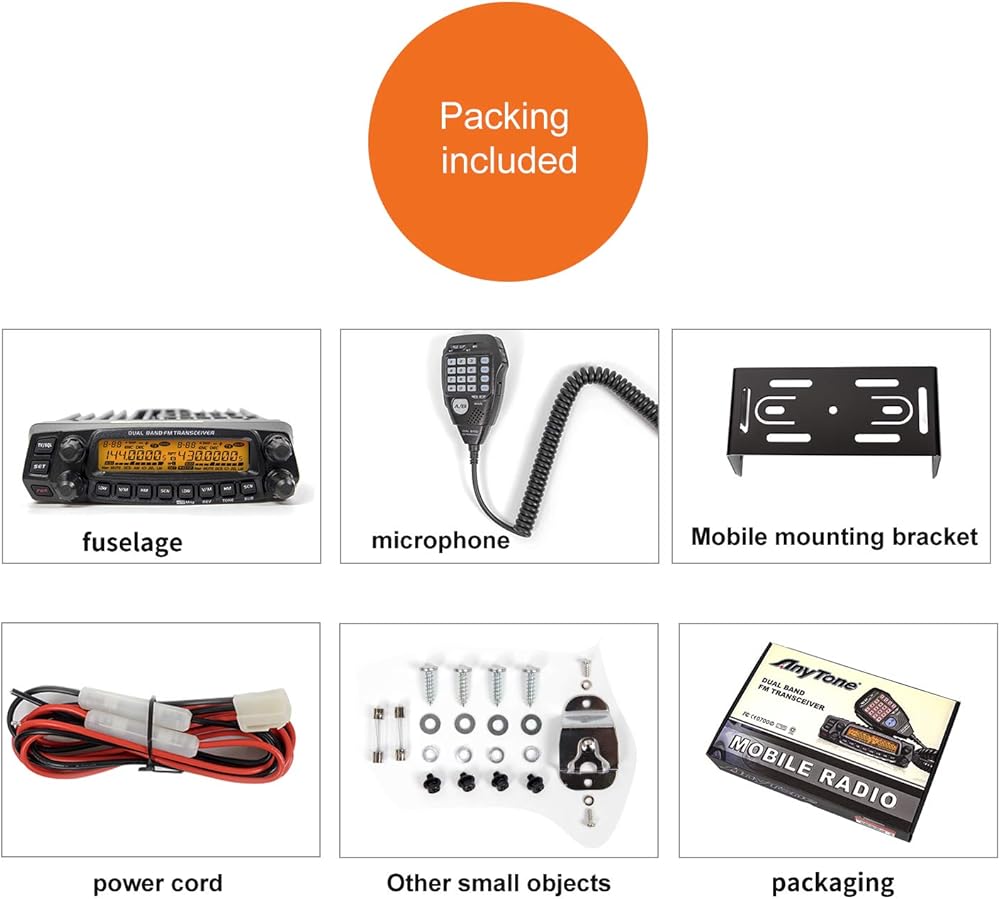 ☞* 50W/40W Full DualBand VHF/UHF Mobile Radio Transceiver! Frequency Range: VHF 136 - 174 MHz, UHF 400 - 4520 MHz. 758 memory channels, full duplex operation with independent volume and squelch controls, 50 Watts of power output on the VHF band and 40 Watts on the UHF band with cross band repeat function.Four independent receiving bands, consist of UU, UV,VU,VV for dual receive and dual output, plus receiving for AM/FM signal of air band,marine band, PMR, etc