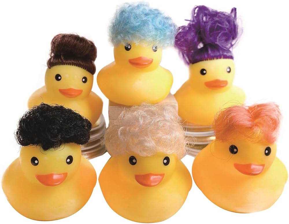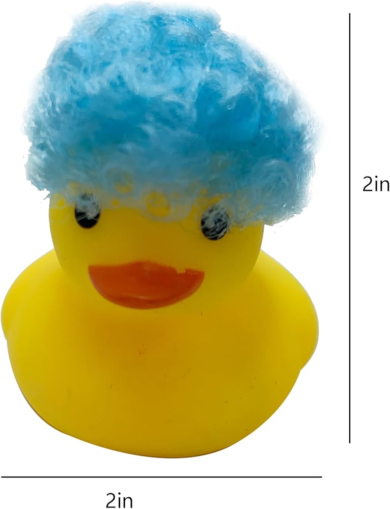 Size: The rubber duck is about 2 inches long, soft and smooth, and has very strong colored hair that can comb her hair for bathing, holding and squeezing, and also makes a chirp made of soft material. All rubber ducks have different hair colors