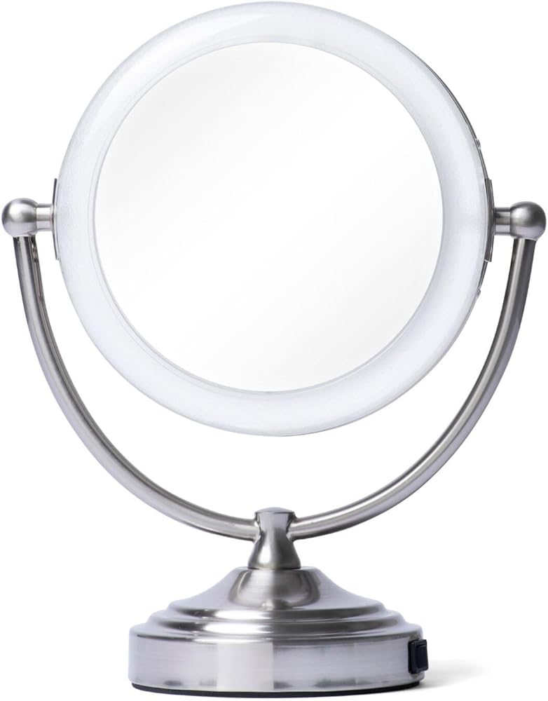 LIGHTED MAGNIFYING MIRROR - A large lighted makeup mirror is a must have in any bathroom or salon. The bright, daylight LEDs never need replacing and let you see clearly to apply makeup, tweeze brows, shave, and much more.