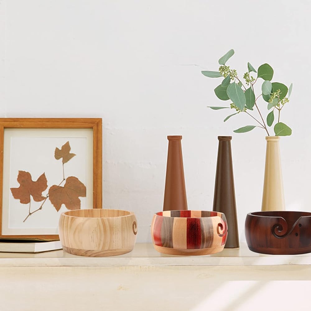【Wooden Yarn Bowl with Holes Holder】The unique curl on the sides of the bowl lets your yarn pass and effectively prevents yarn tangling. It is a functional and aesthetic yarn storage bowl that holds yarn balls in place and keeps them clean while you knit or crochet.