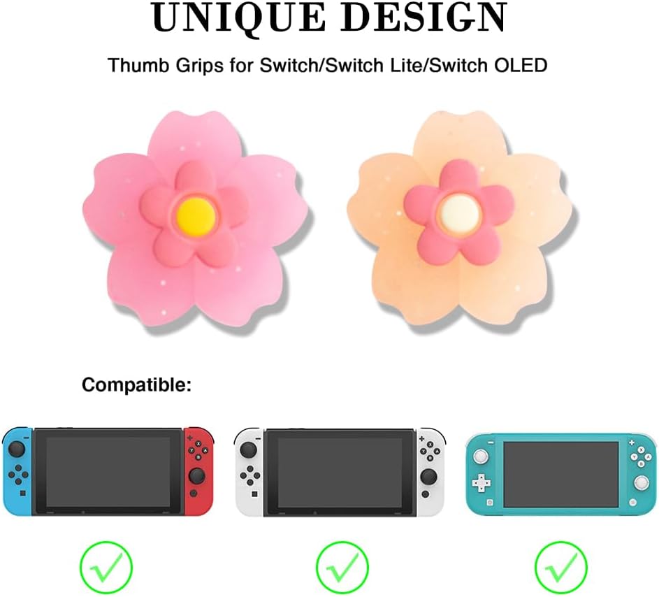 💗【Cute Lovely Original Design,Eye-catching Decoration】You will get 2 Pairs (4pcs) cute joycon thumb grips. Come in 2 colors and 2 different styles, adds flavour and vitality into your game, It is lightweight and thin, make your Switch and Switch Lite look more attractive, not bulky