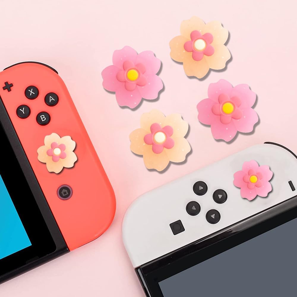 PERFECTSIGHT Cute Thumb Grip Caps Compatible with Nintendo Switch/OLED/Switch Lite Console, Soft Skin Silicone Analog Stick Button Cover for NS Joycon Controller, 4PCS Kawaii Joystick Cap