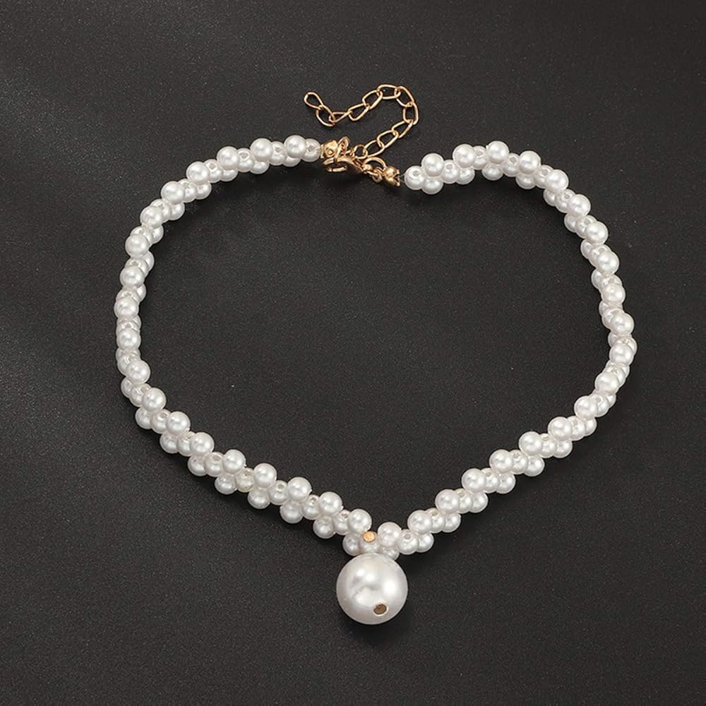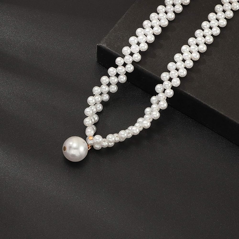 Doubnine Pearl Bead Choker Pendant Elegance Wedding Ivory Necklace for Women Bride Gift