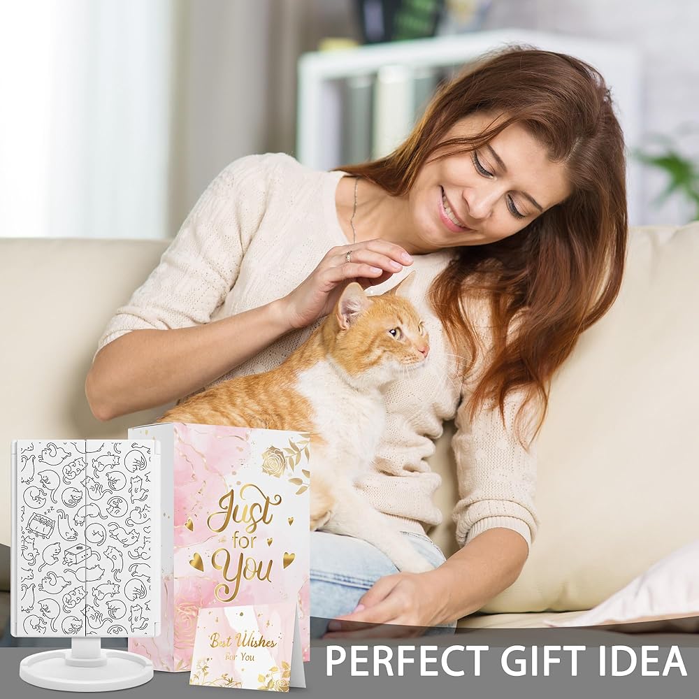 BEAUTIFUL GIFTS FOR CAT LOVER - This lighted makeup mirror features 21 built-in LED lights, providing ample brightness without being harsh on the eyes. It's perfect for applying makeup in dimly lit or low-light spaces, ensuring that cat lover always looks her best.