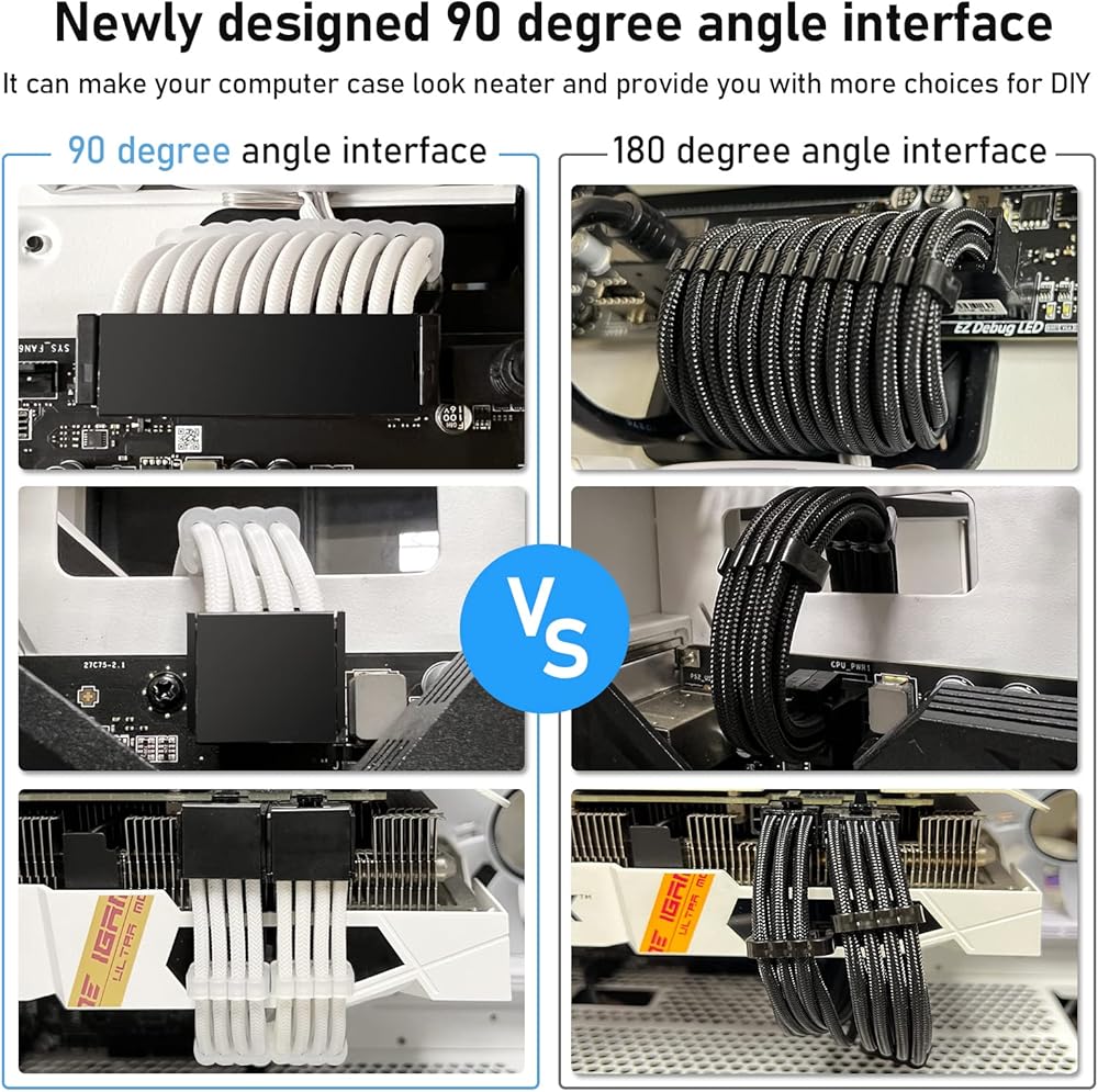 【Upgrade 90° Connector】Compared with the traditional right-angle connector, the 90-degree angle connector can make the computer case look neater, and each computer extension cable is equipped with 3 combs. Better for diy computer enthusiasts s solution.