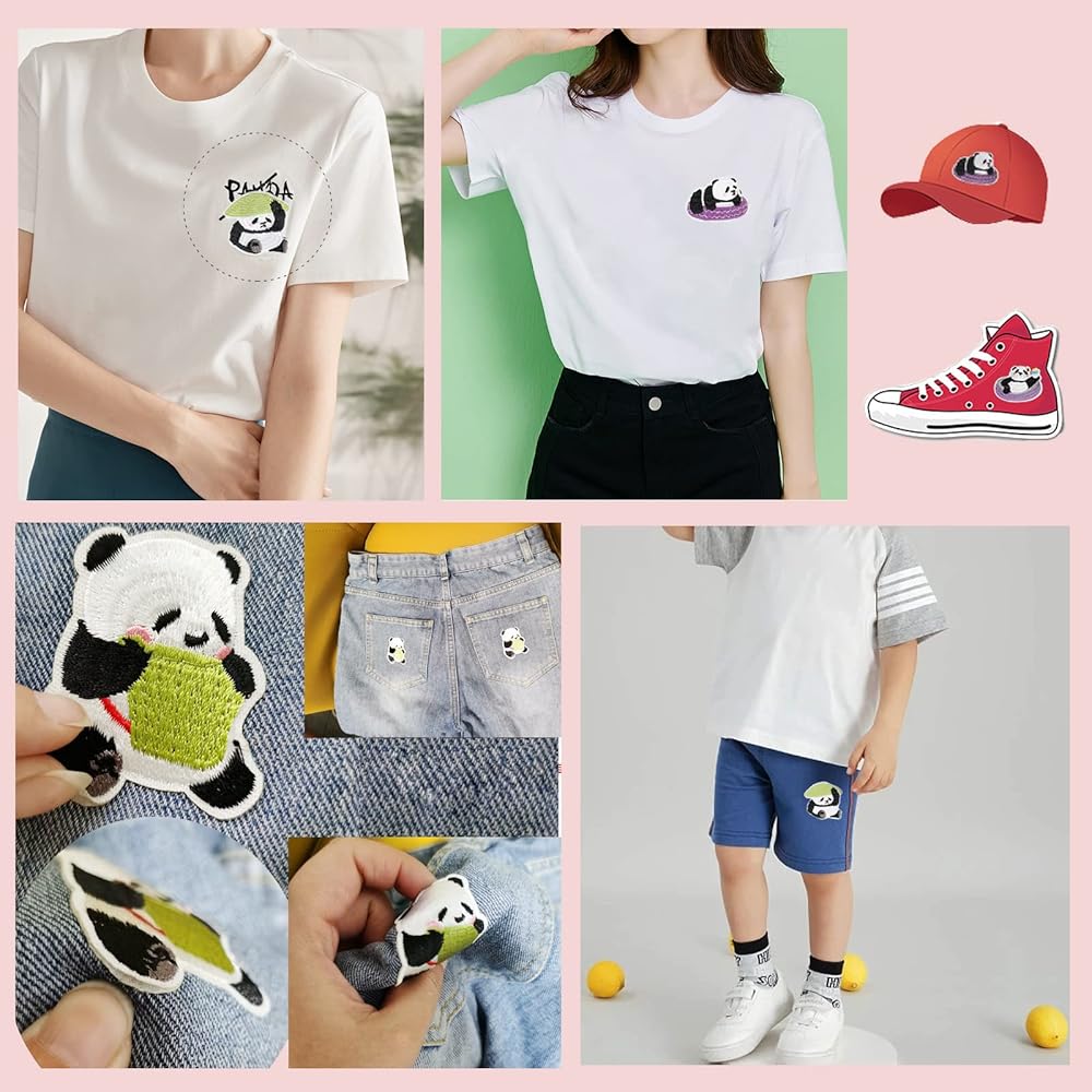 【Exquisite and lovely panda embroidery use】 please lay the embroidery flat on the clothes, use the iron to iron 3 seconds on the embroidery, you can stick the embroidery and clothes tightly together, you can also use the sewing machine to sew the embroidery and clothes together.