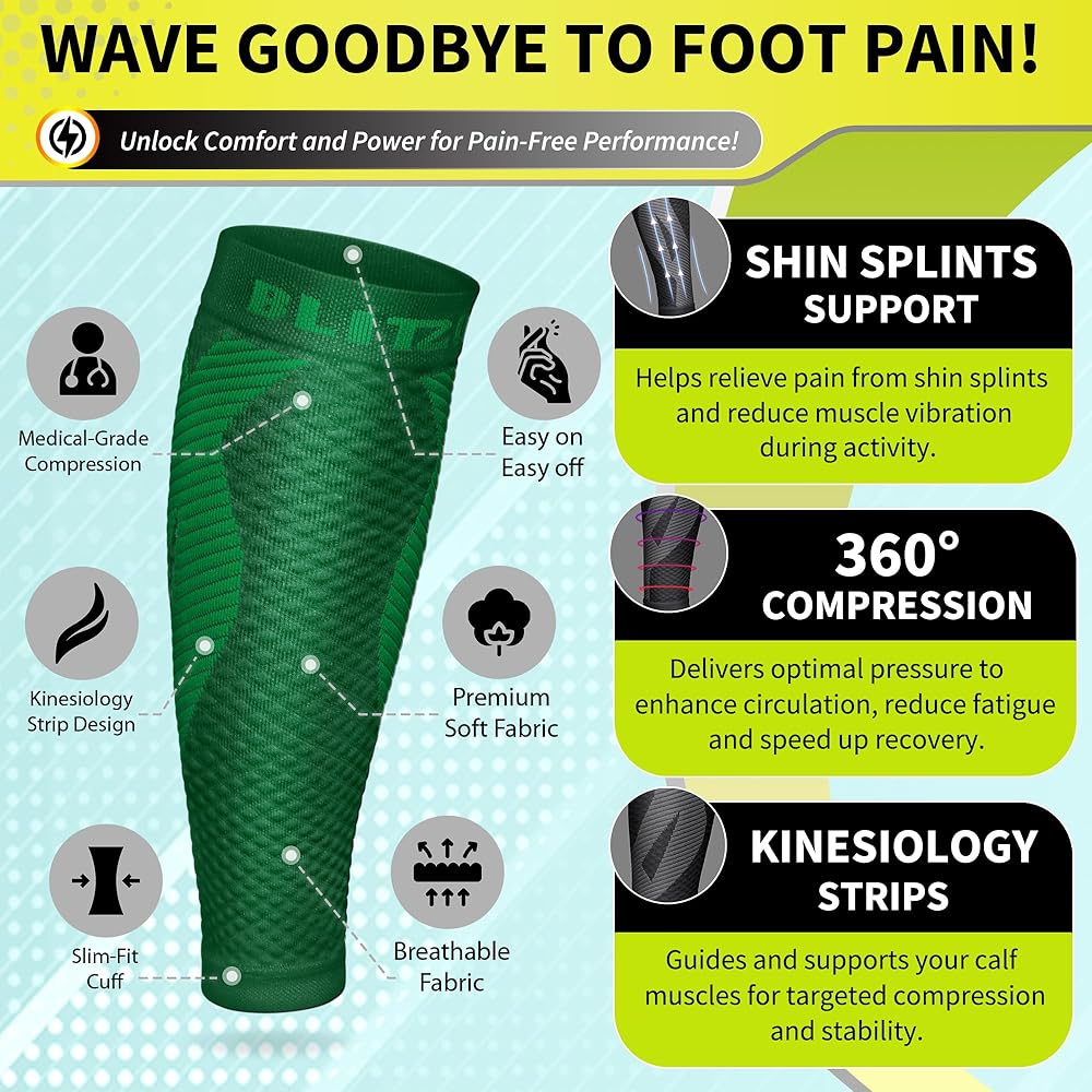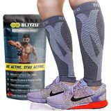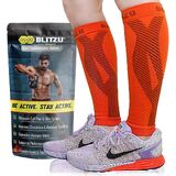• SHIN SPLINT RELIEF: If you suffer from the pain of shin splints and never use our footless compression socks for women & men, then you've missed a lot. BLITZU calf compression sleeves are designed to energize your whole tired legs assist, boost circulation in your calf, and build your muscle strength to help reduce the stress caused by shin splints. Our calf sleeves are essential running accessories and marathon running gear. Perfect for extreme races, marathon and long runs!