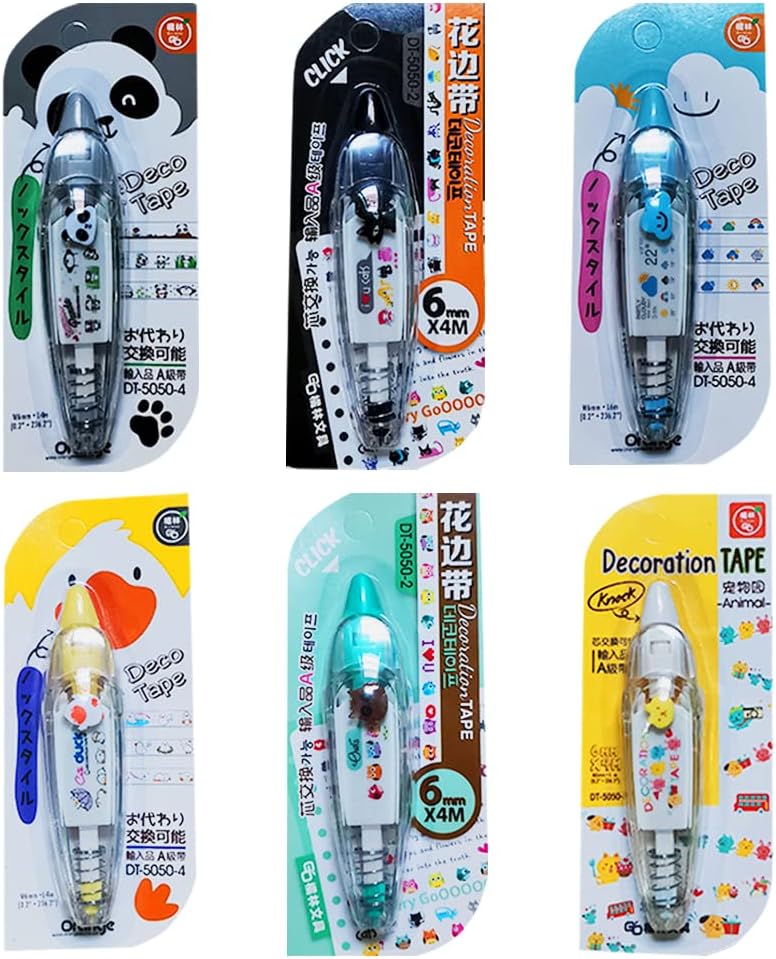 6Pcs Correction Tape, DIY Decorative Correction Tape Creative Cartoon Pattern Decorative Tape for Scrapbooking Greeting Card Letter Diary Stationery School Supplies