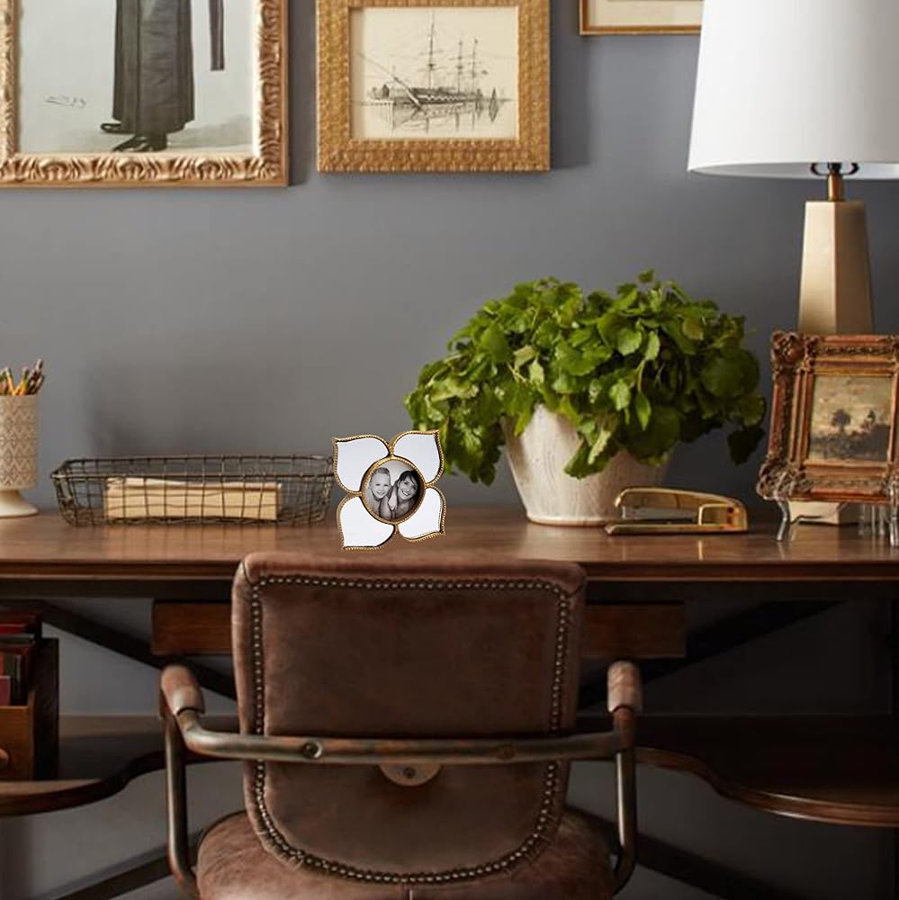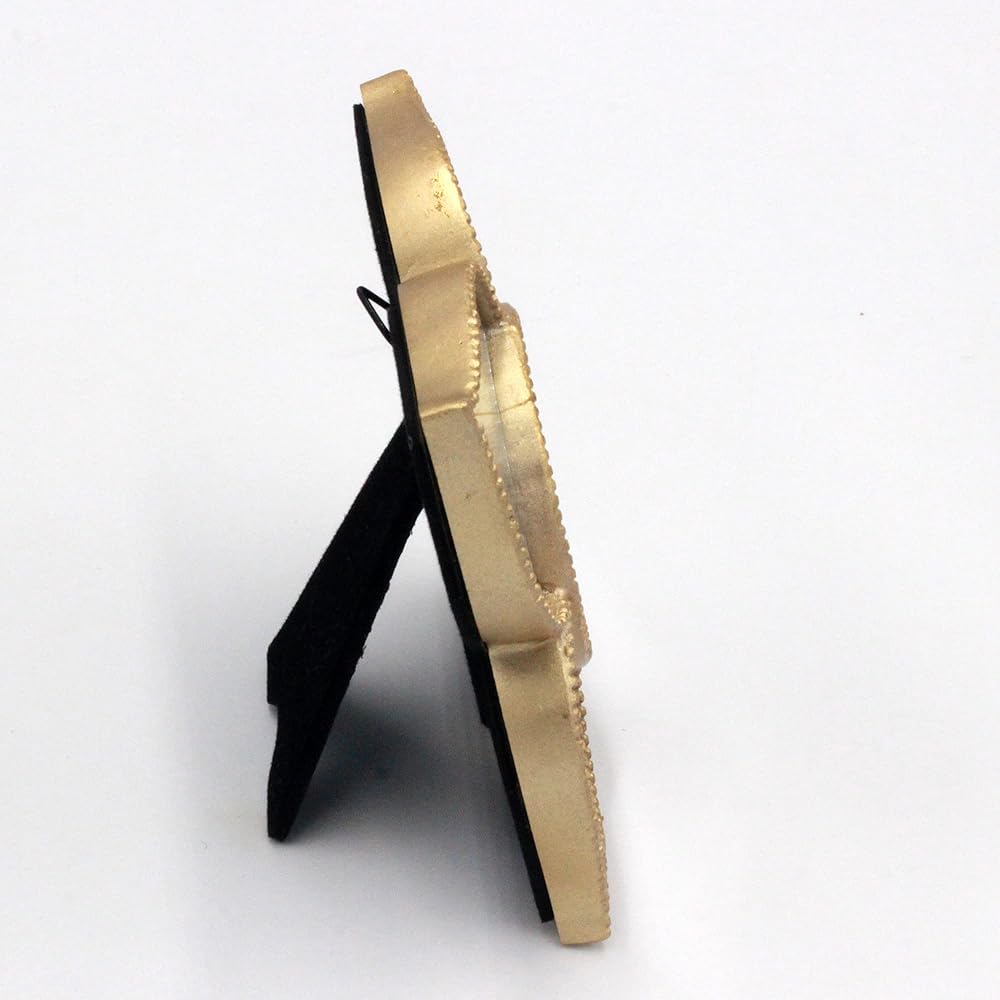 - Beautiful flower shaped gold plated photo frame. Holds a 2x2inch small photograph.
