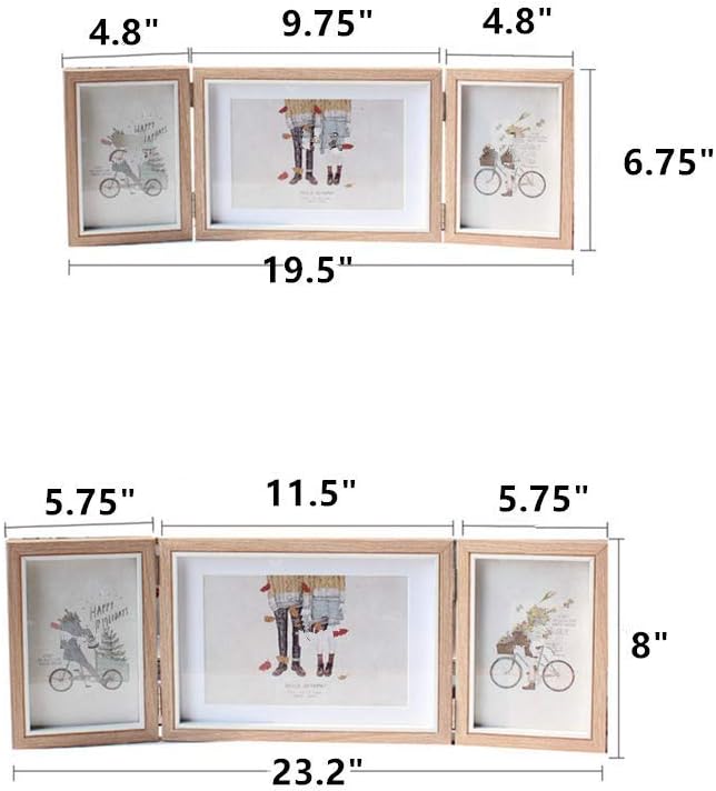 Holds 2 pcs 4x6 inch vertical and 1 pcs 5x7 inch horizontal pictures. Displays on tabletop.