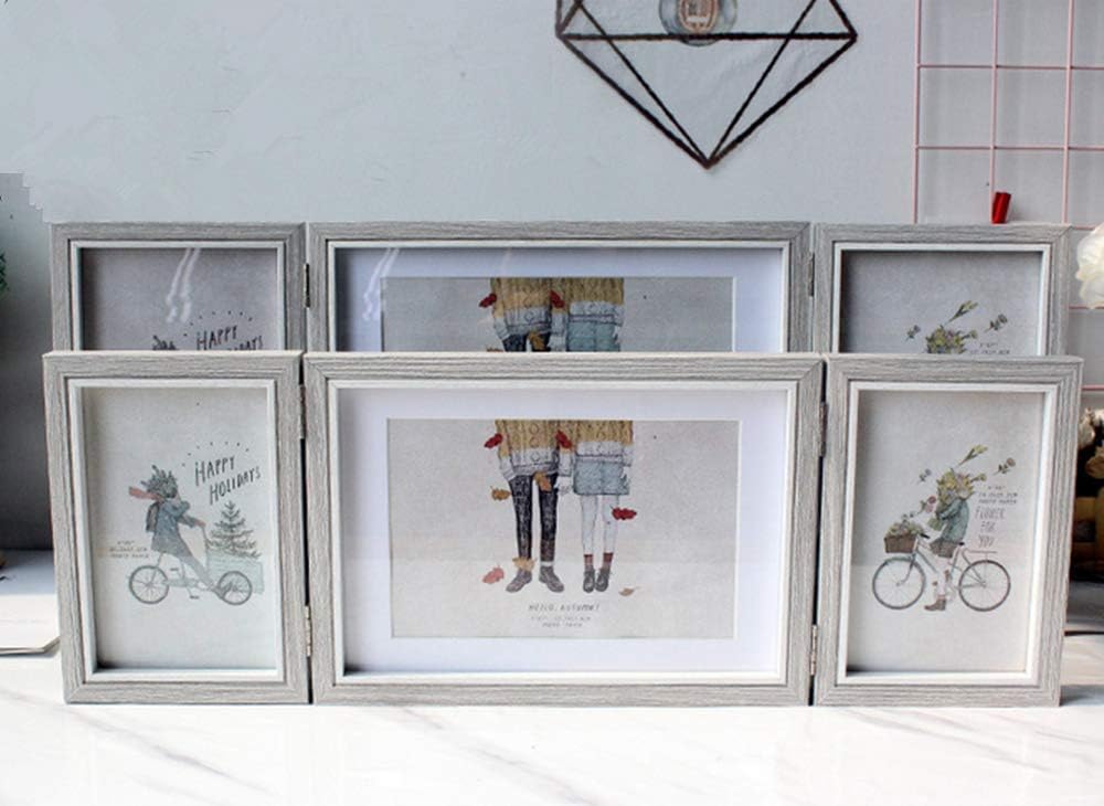 Silver Hinged Folding Three Picture Frame Display 4x6 inch Vertical and 5x7 inch Horizontal Photo or Pictures for Desk Triple Opening Wedding Family Grayish White