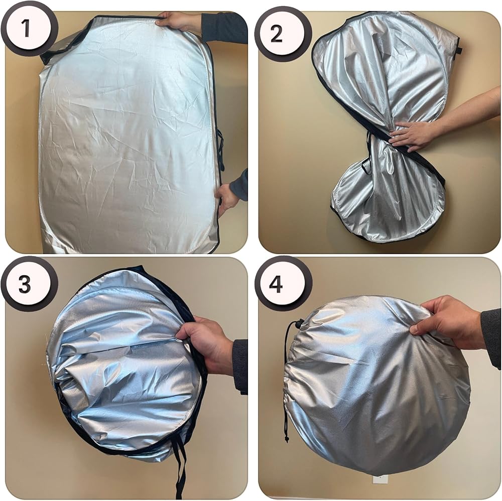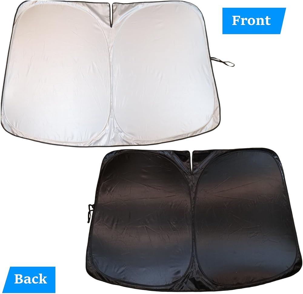 Reflective Technology & Easy Installation: Featuring a reflective 240T material combined with a high-strength flexible wire frame, our sunshade is built for longevity and ease of use. Its integrated mirror cut-out enhances the fit, further optimizing sun protection and cooling efficiency.