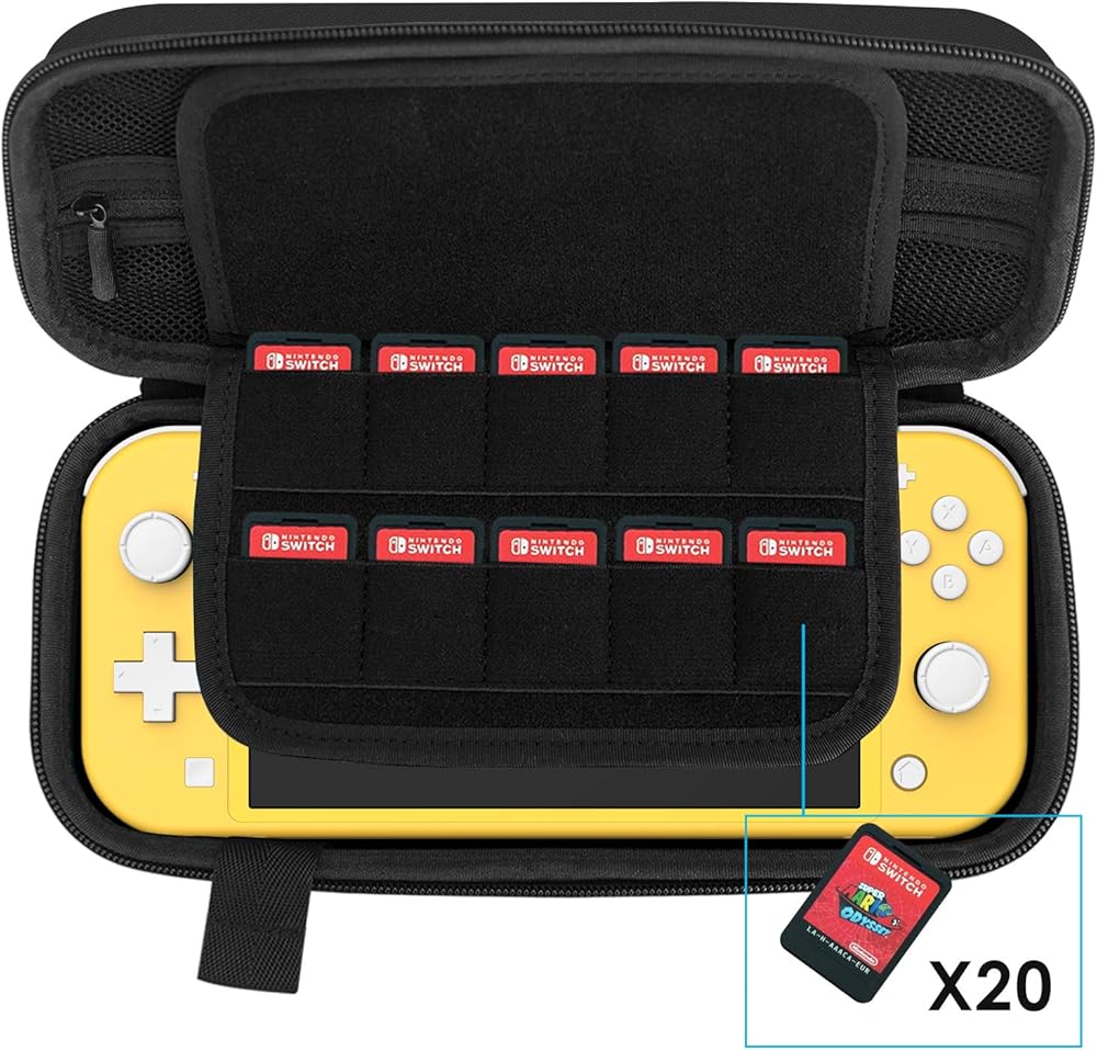 [Large Capacity] Separate inner pockets are perfect for keeping Joy-Con analog sticks, 20 game cases, cables and earbuds well-organized (Note: CANNOT accommodate larger items like chargers)