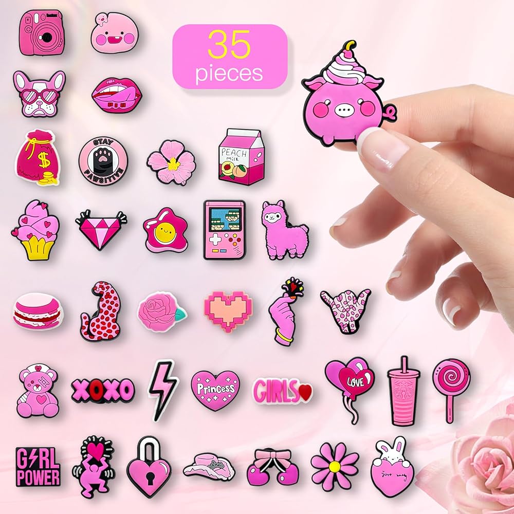 Girl's Pink Charms: Each set contains 35pcs different shoe decoration charms, allowing you to freely match different styles to make your shoes more colorful.