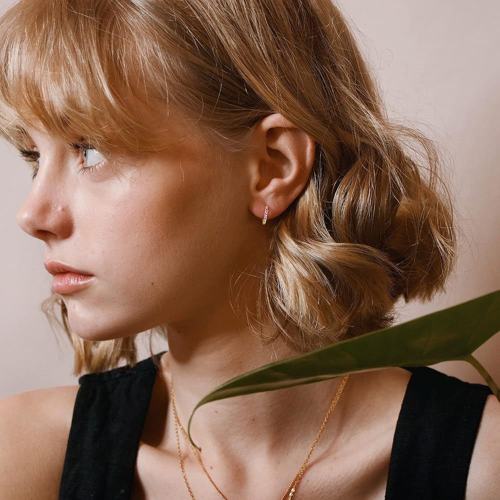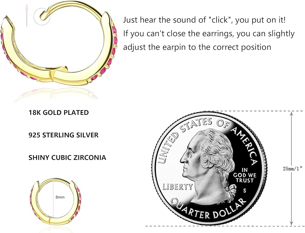 💝MATERIAL💝The huggie hoop earrings are made of 925 sterling silver and cz, with S925 stamped. 18K gold plated, hypoallergenic, nickel-free, lead-free, won't irritate your ears.