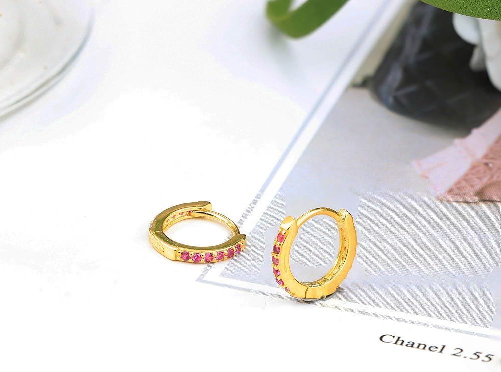 💝DESIGN💝The huggie hoop earrings are inlaid with zircon on both sides, can be seen in the front and back. Green, pink, blue, three colors cz options to better match your outfit.