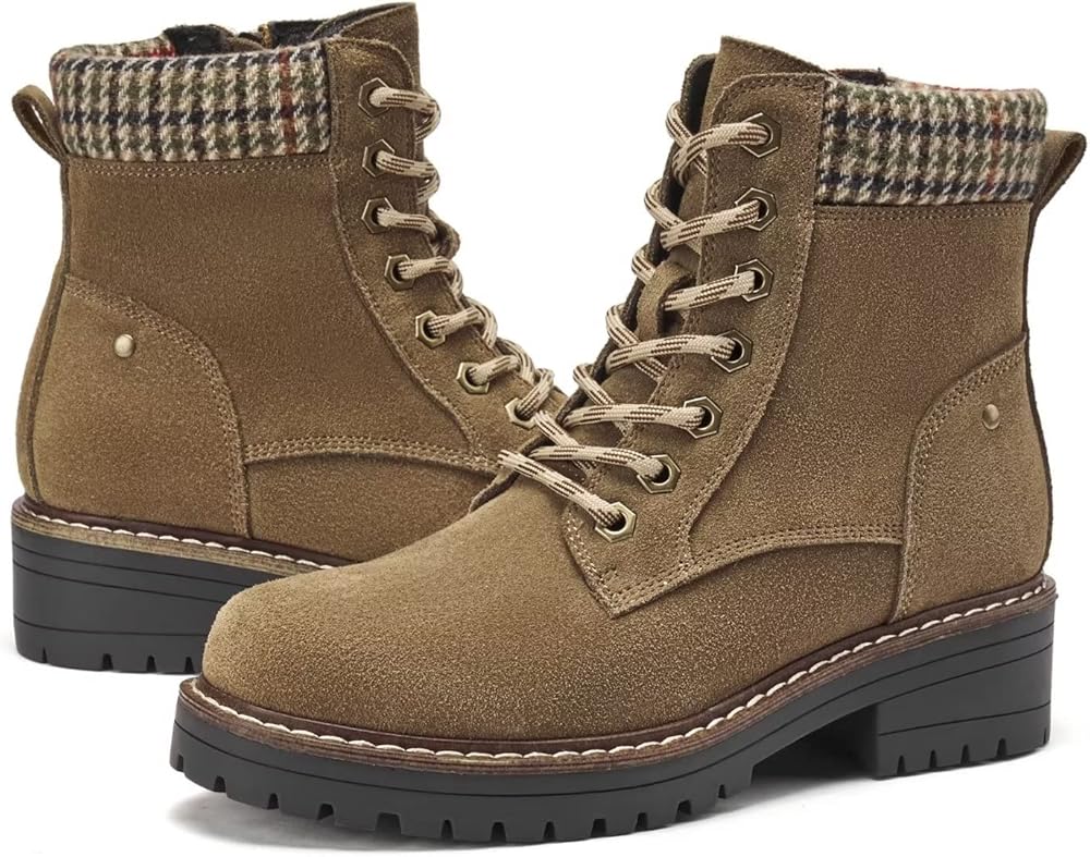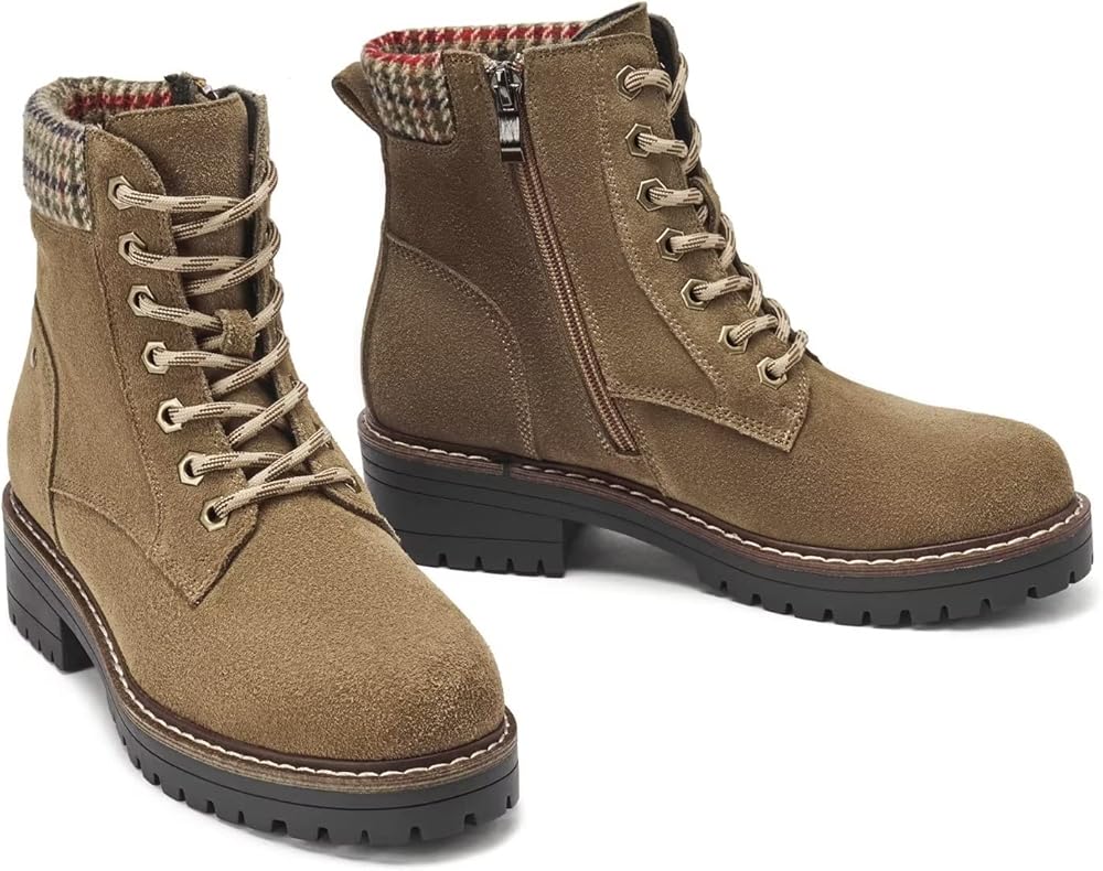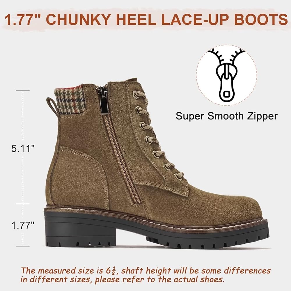 Women's cute boots used premium faux leather upper with lace up closure and zipper inside for easy on and off. And its white stitching on the platform makes these boots more elegant.