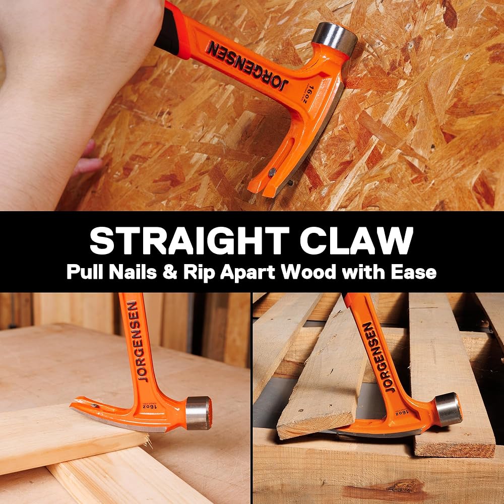 Premium Quality: This straight claw hammer is made from one-piece forged and heat-treated carbon steel, making it a solid and secure striking tool. Its single-piece forged construction provides great strength, durability and longevity.