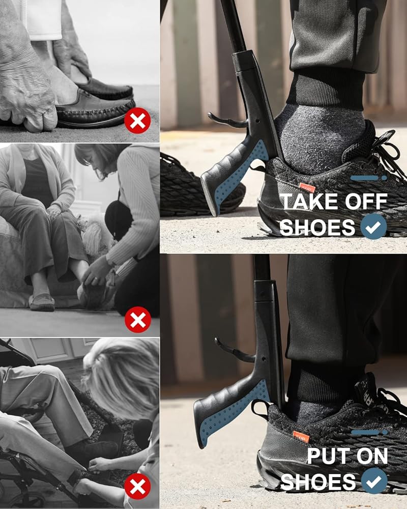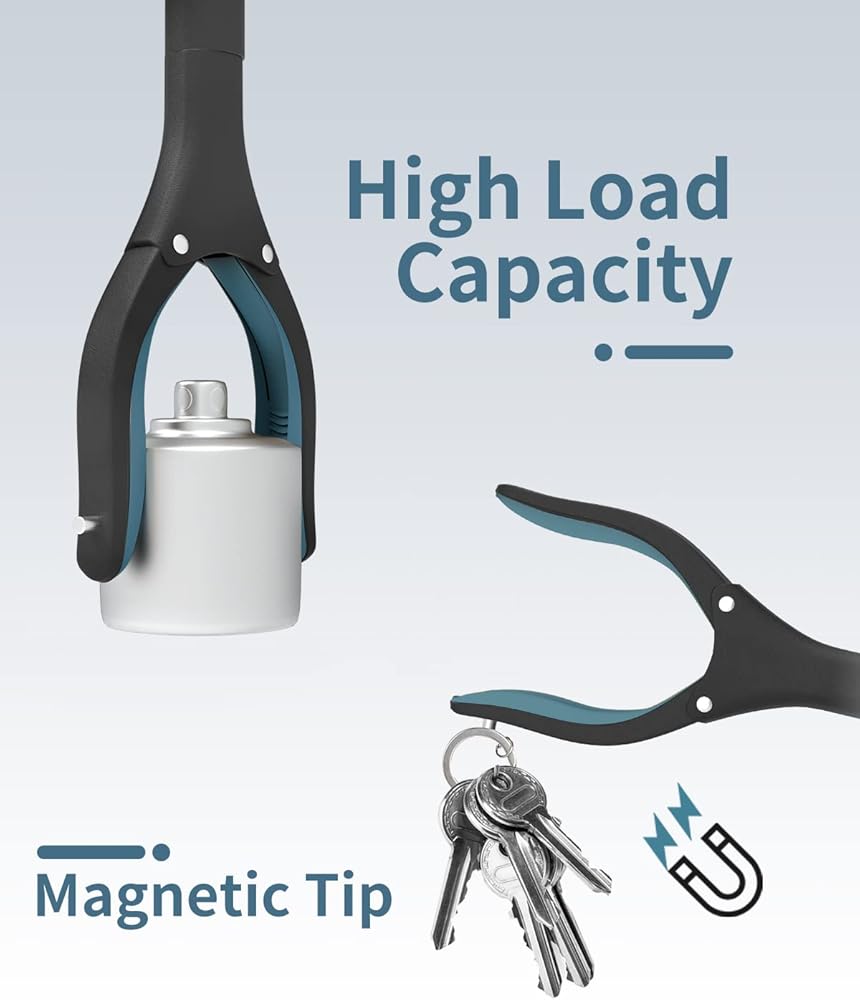 【Unlock Longer Reachings】Built in lightweight aluminum and hard plastic, Jellas reacher features a 360° rotating head, a shoehorn design at the tail, and an ergonomic handle, great for people with arthritis, back pain, or mobility problems to extend reachings with safe grips.