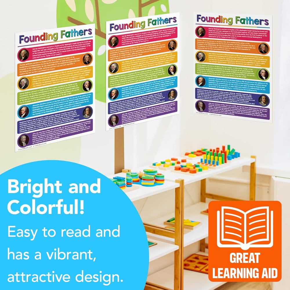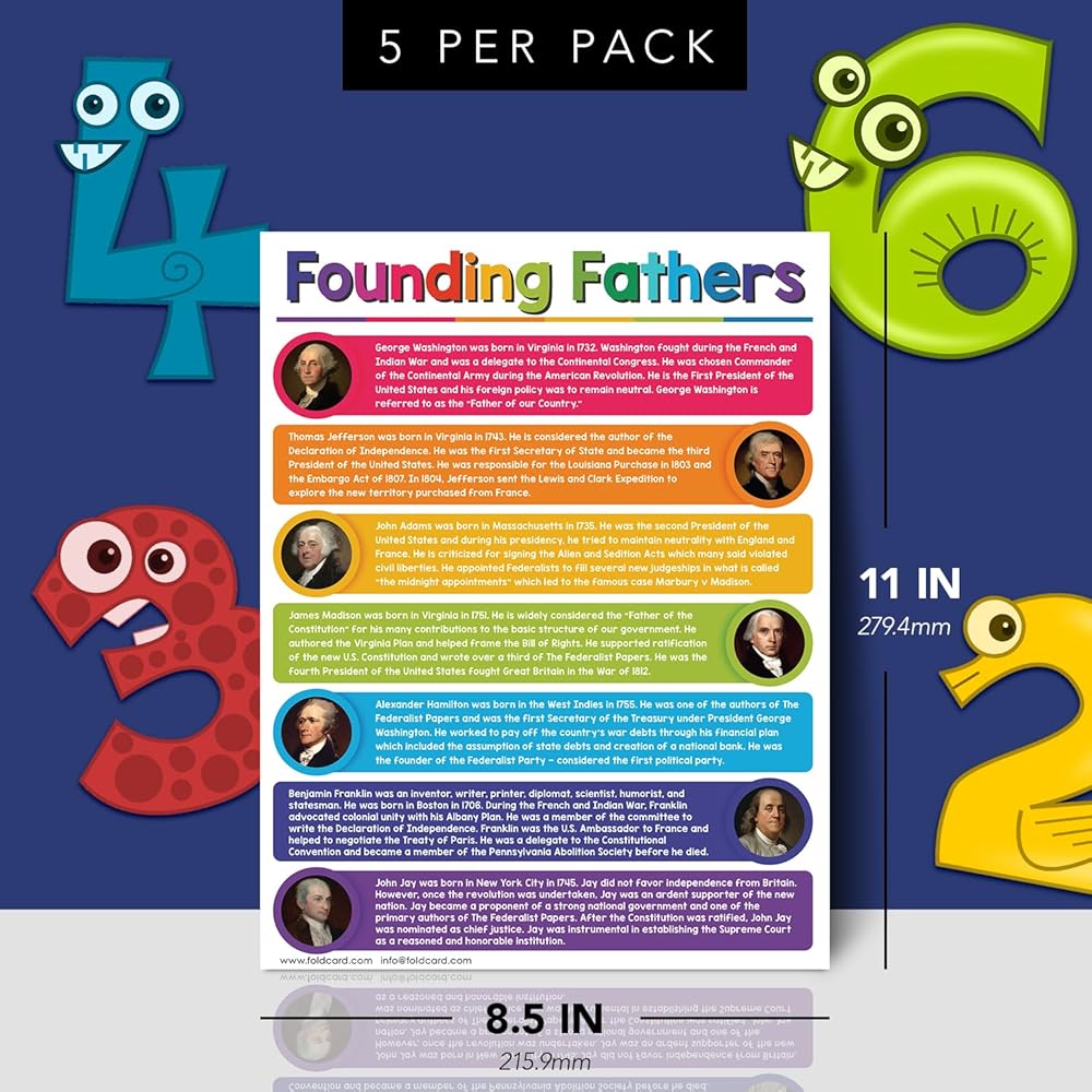 USA Founding Fathers Educational Posters – Classroom and Homeschool American Learning Chart and Wall Art Decorations, Preschool to Gradeschool | Durable Glossy Cardstock | 8.5" x 11" | 5 per Pack