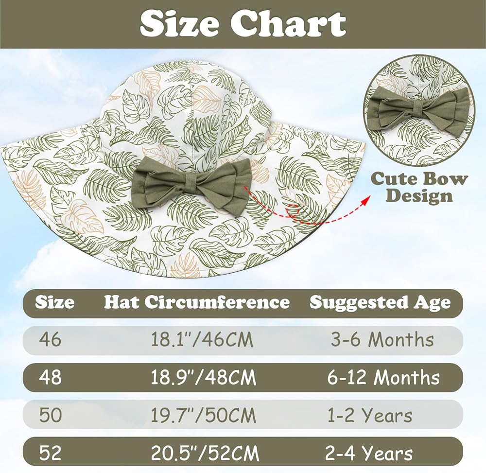 Size Information: The toddler girl hat comes in 4 sizes: 46cm(18.1inch) for 3-6 months; 48cm(18.9inch) for 6-12 months; 50cm(19.7inch) for 12-24 months; 52cm(20.5inch) for 2-4T. The age is for reference only, you can measure your baby's head to choose the size. Keep baby in style on sunny days with one of the girls beach hat.