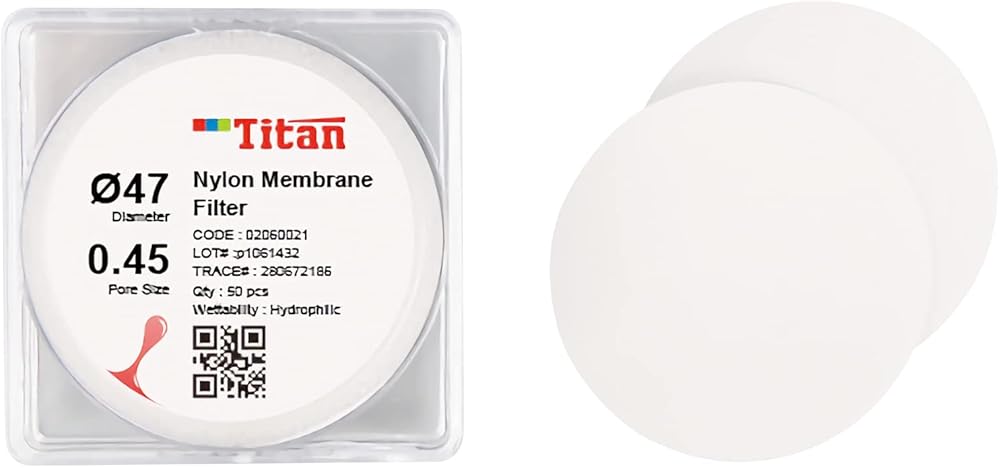 - Diameter: 50 mm; Pore Size: 0.22 μm.