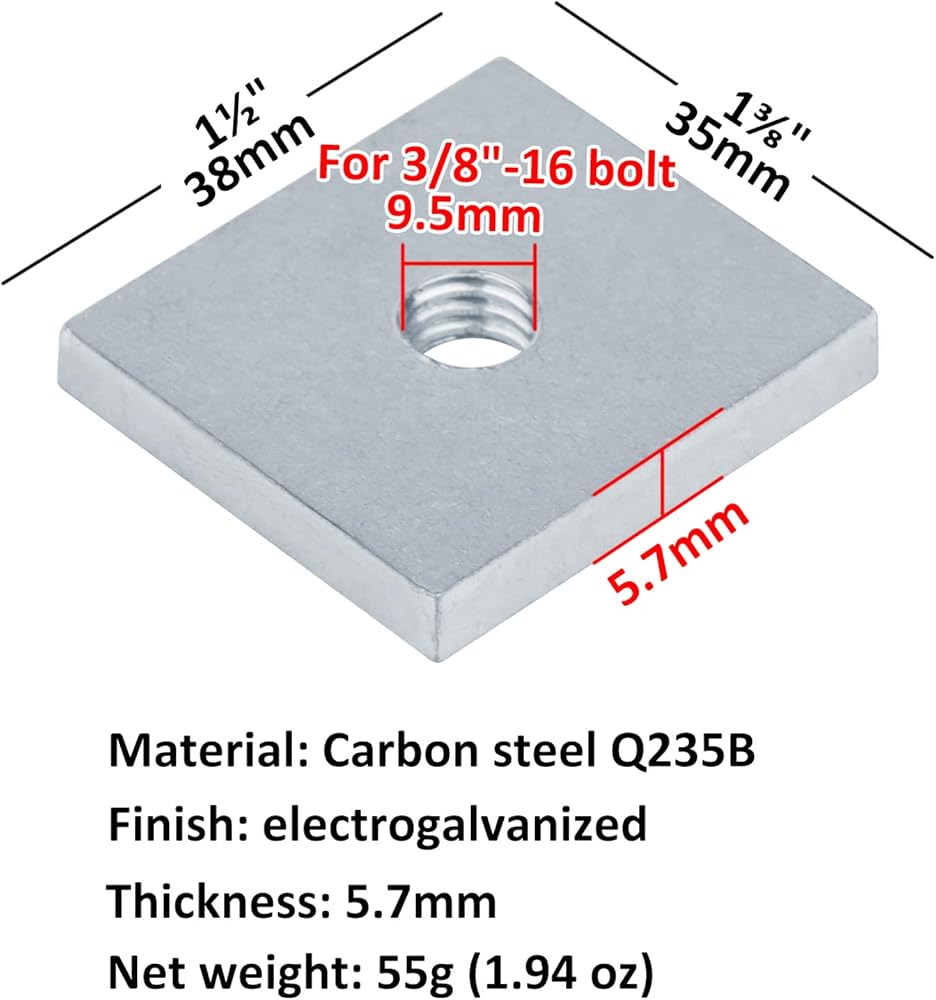 - Size: 1-3/8 x 1-1/2 inch (35x38mm), Thickness: 5.7mm,Hole diameter: 3/8"-16