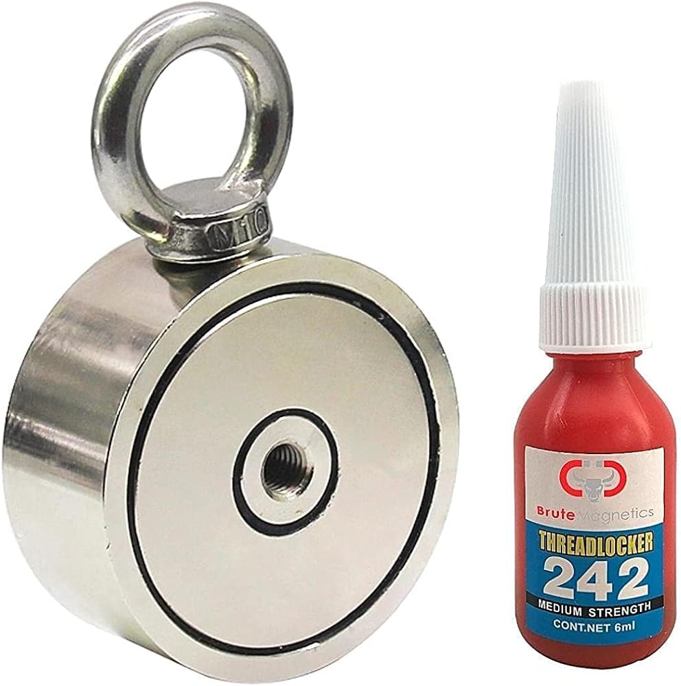 SECURE MAGNET Single-sided neodymium fishing magnet has strength tested over 2100 pounds of pull force and a 7.09" diameter. Included threadlocker secures the eyebolt while magnet fishing. Always land your treasure without worry of losing your gear.