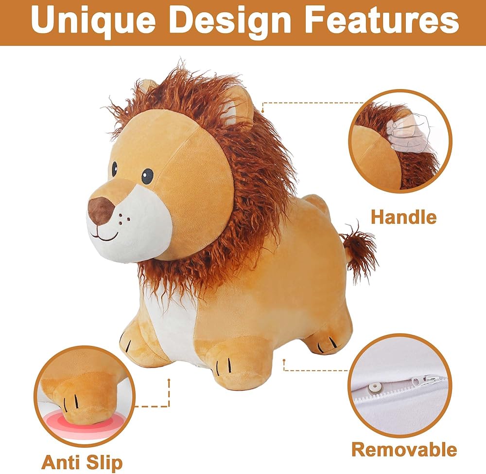 【Unique Design】We have specially designed this stylish, cute, and visually appealing unique lion hopper. It is tailor-made for toddlers and covered with soft fabric, ensuring that children feel safe and happy while playing.