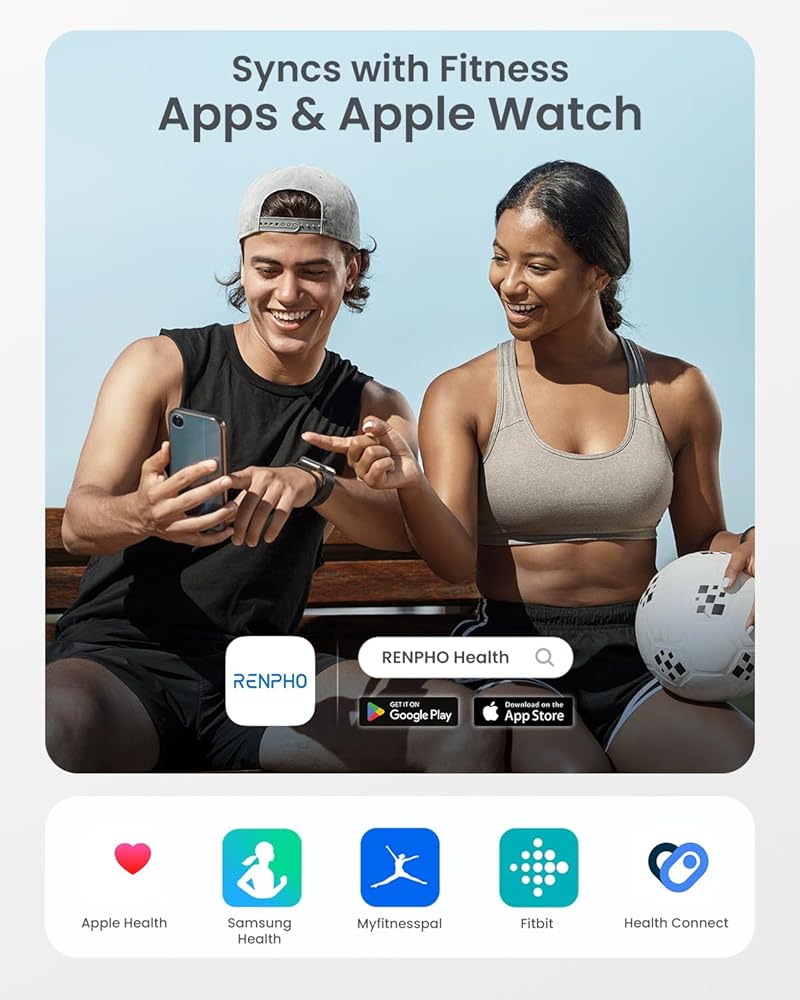 Sync with popular fitness apps. Download the Renpho Health app to start using the body weight scale and track your body composition. Create unlimited profiles for the whole family and track your health data together. The Renpho Health app is also compatible with popular fitness apps such as MyFitnessPal, Apple Health, Samsung Health, Google Fit, and Fitbit so that you can sync your health data and monitor your health progress anytime, anywhere.
