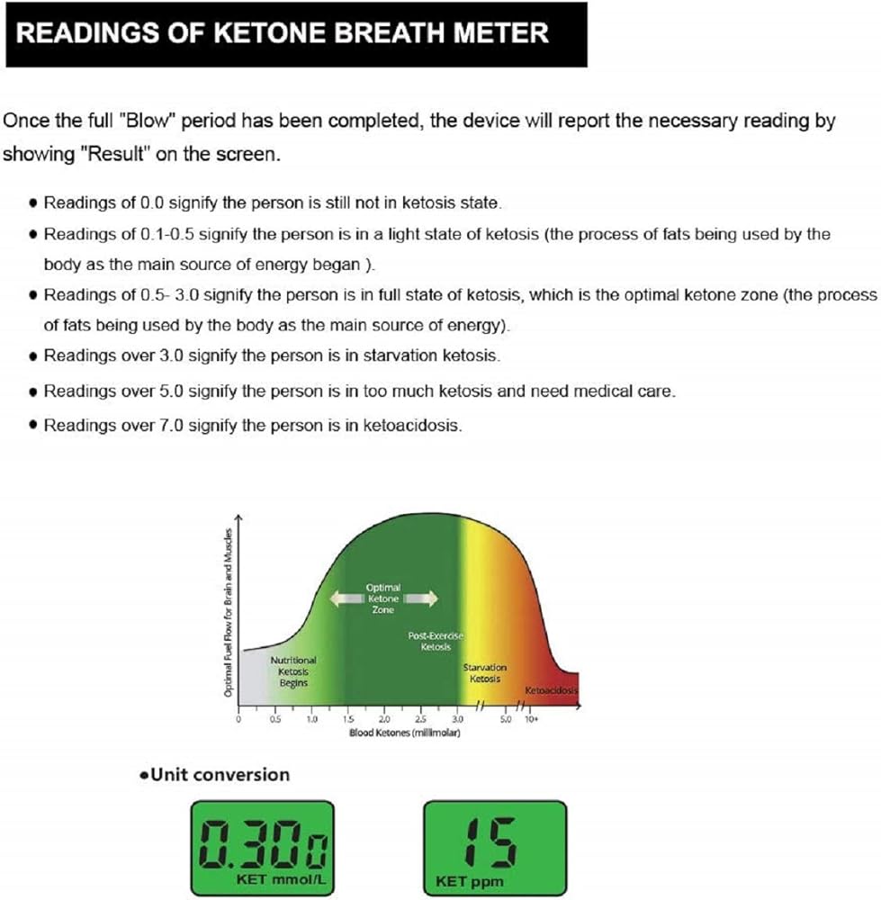Breath Acetone Concentration (ppm): 40 ~ 59. Be Caution! You are approaching too much ketosis