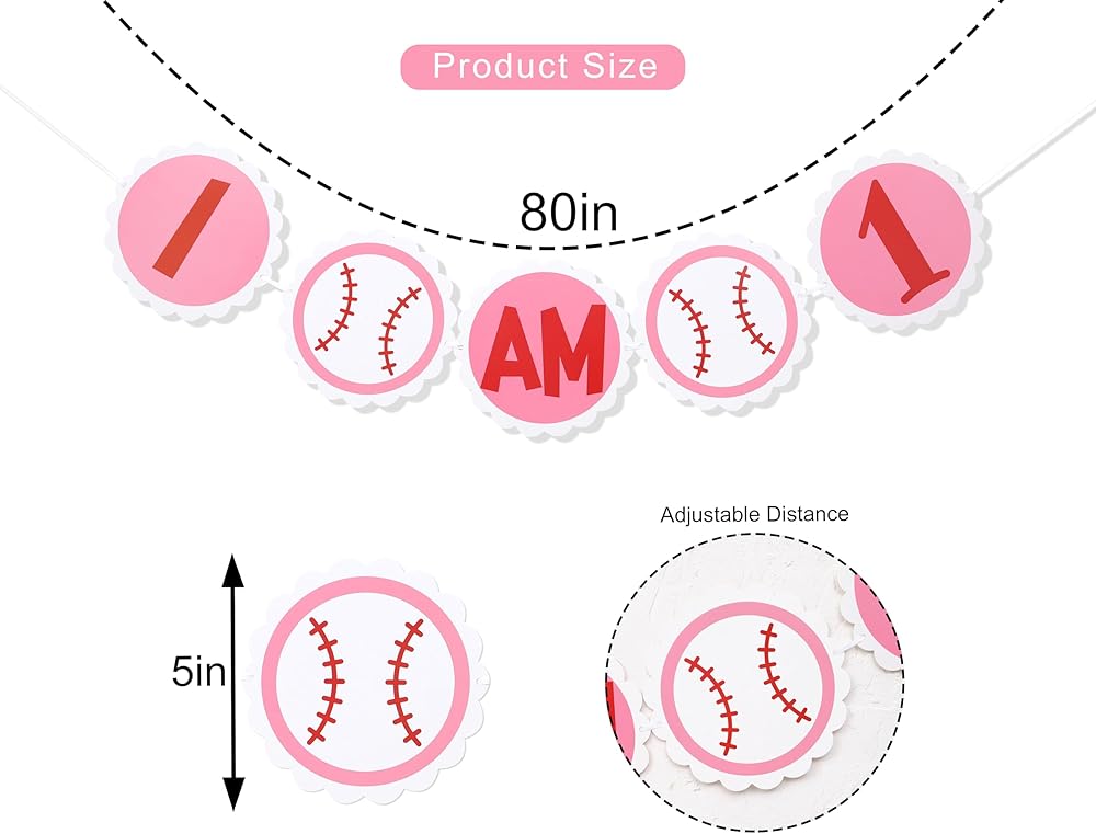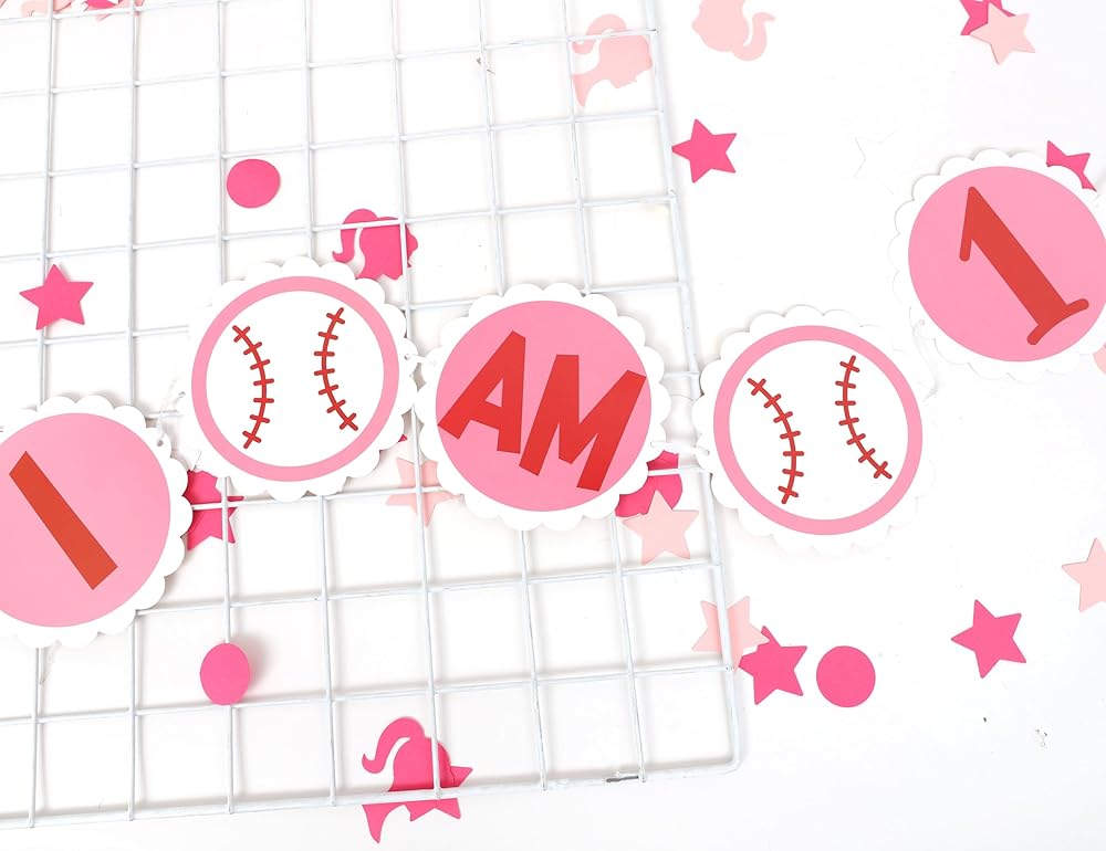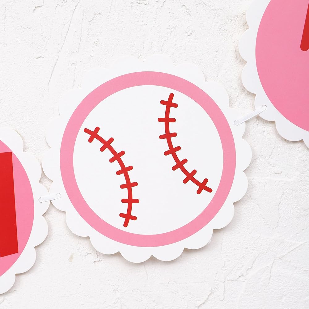 BASEBALL FIRST BIRTHDAY PARTY DECOR - Beautiful And Functional, The Pink And White Baseball High Chair Banner Is Sure To Be A Hit With Little Girls Who Love Sports, And It's Sturdy And Durable Enough To Keep As A Keepsake.