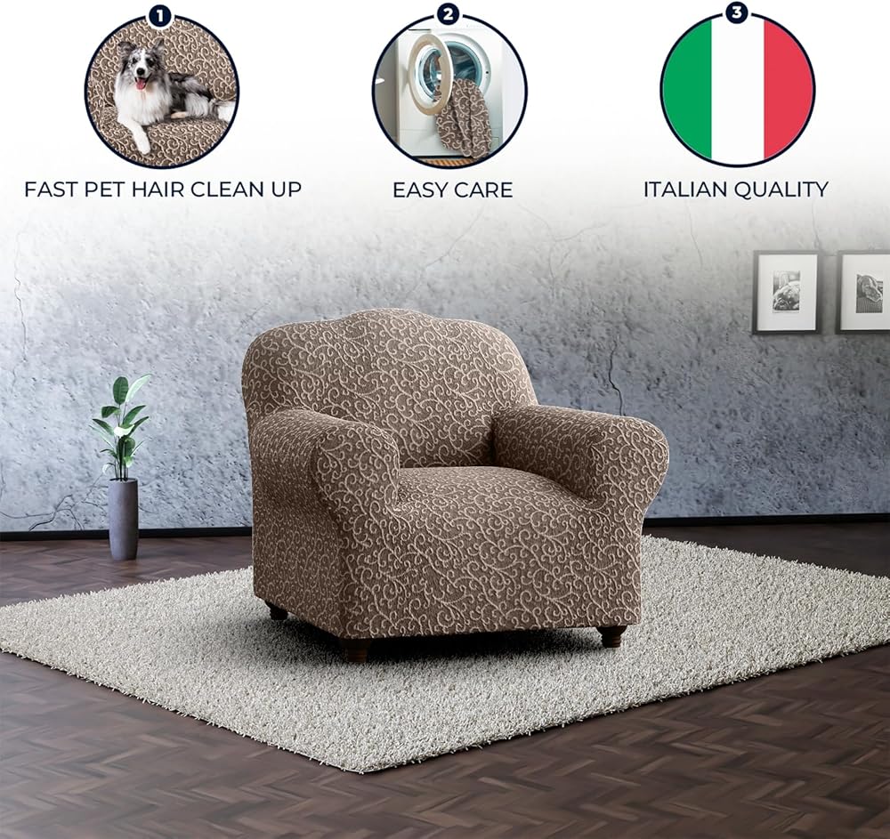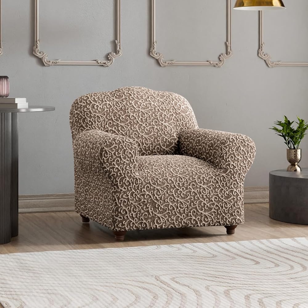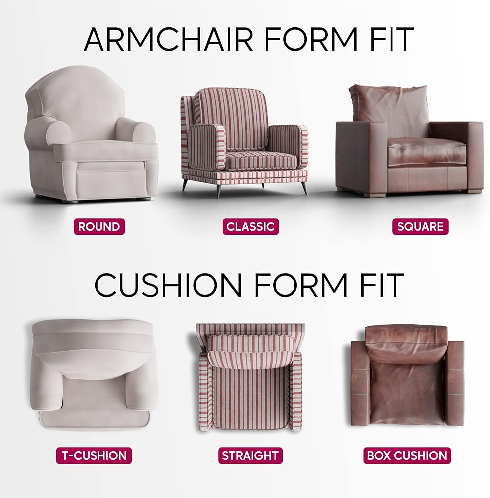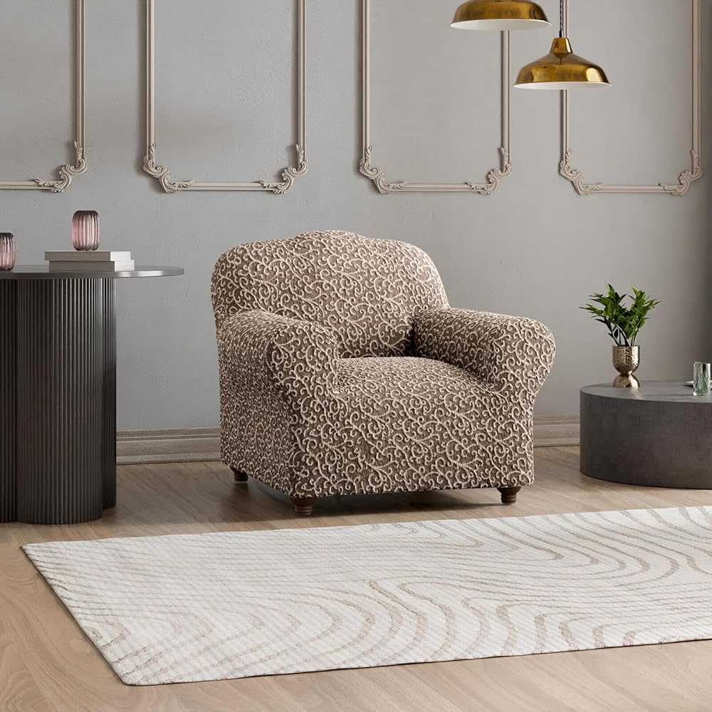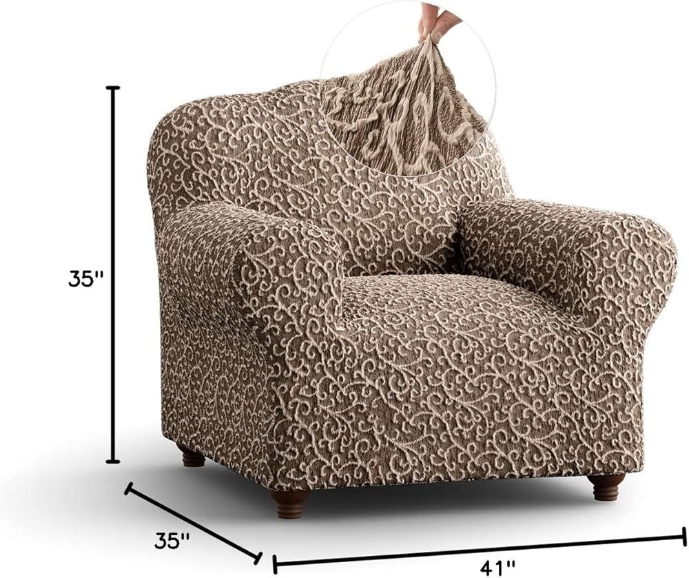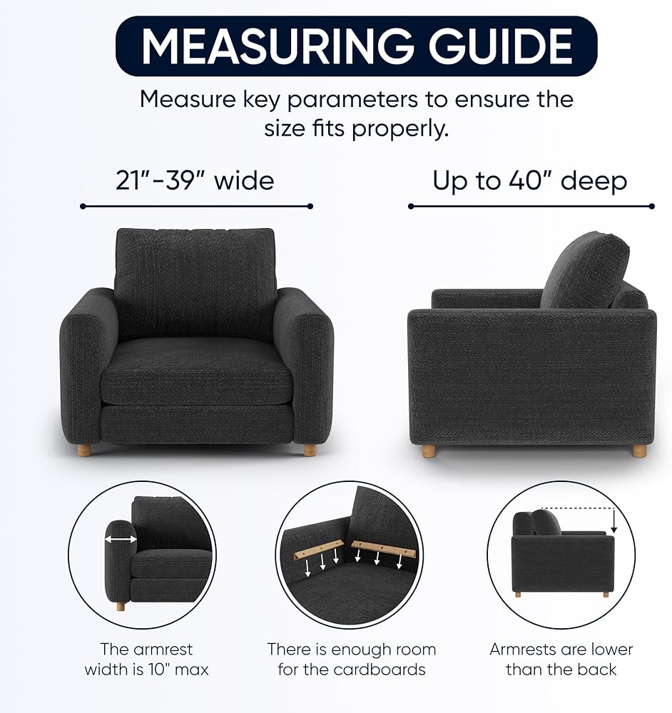 PERFECT FIT - ONE SIZE: Our slipcover stretches to fit chairs and a half, loveseats, and couches 40”-63” wide. Made with patented bi-elastic fabric, it is adaptable and durable, perfect for everything from oversized armchairs to loveseats. PLEASE MEASURE BEFORE PURCHASING.