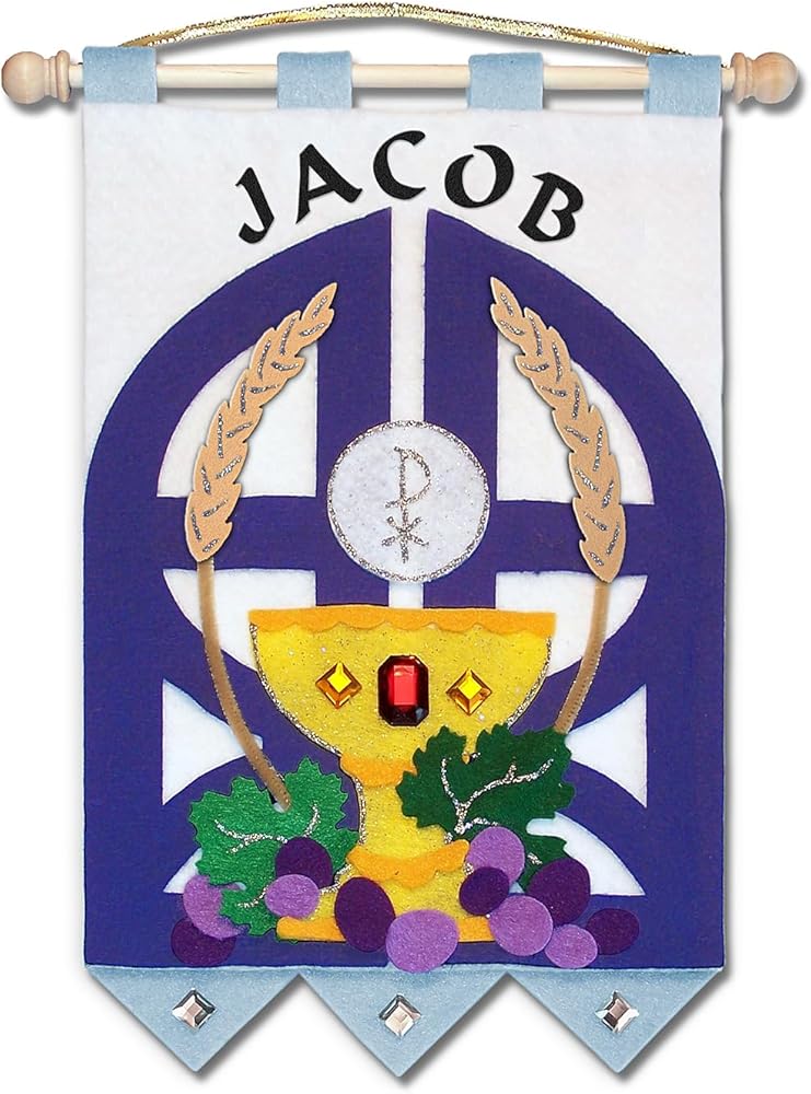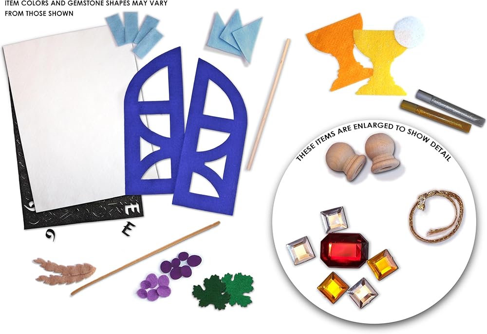 FELT PIECES: 29 pre-cut, premium quality, felt pieces are included with this kit (3 sky blue pennants, 4 sky blue tabs, 2 royal blue gates, 2 chalices, 2 leaves, 2 wheat heads, 12 grapes, 1 host, 1 - 9" x 12" base).