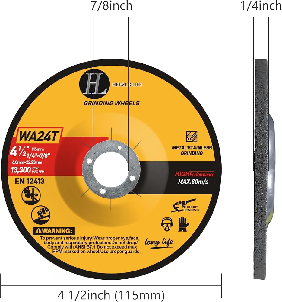 ✅【High-Quality&Great Performance】This is a pack of 25 pieces cutting wheels,The ultra-thin design of 0.04" thickness provides fast, precise, and clean burr free cutting. The cutting wheels are Perfectly compatible with all 4-1/2 inch angle grinders with 7/8-inch arbor, operating up to 13,300 RPM and 80M/S.They'll help you get the job done faster and more efficiently.