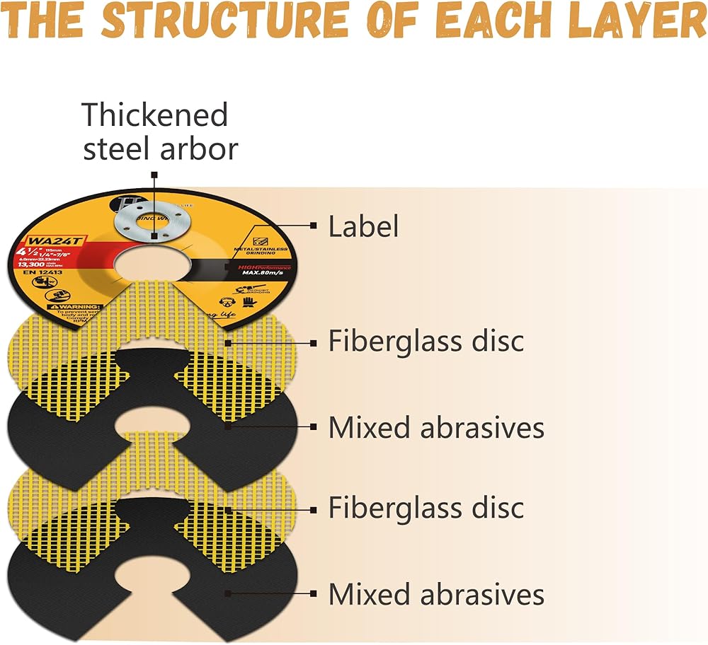 ✅【Excellent materials and Manufacturing processes】Our Cut Off Wheels are made with a premium aluminum oxide grain,more smooth and durable than other wheels, they are reinforced by double fiberglass mesh to ensure fast cutting,further safety, extra toughness and longer service life.