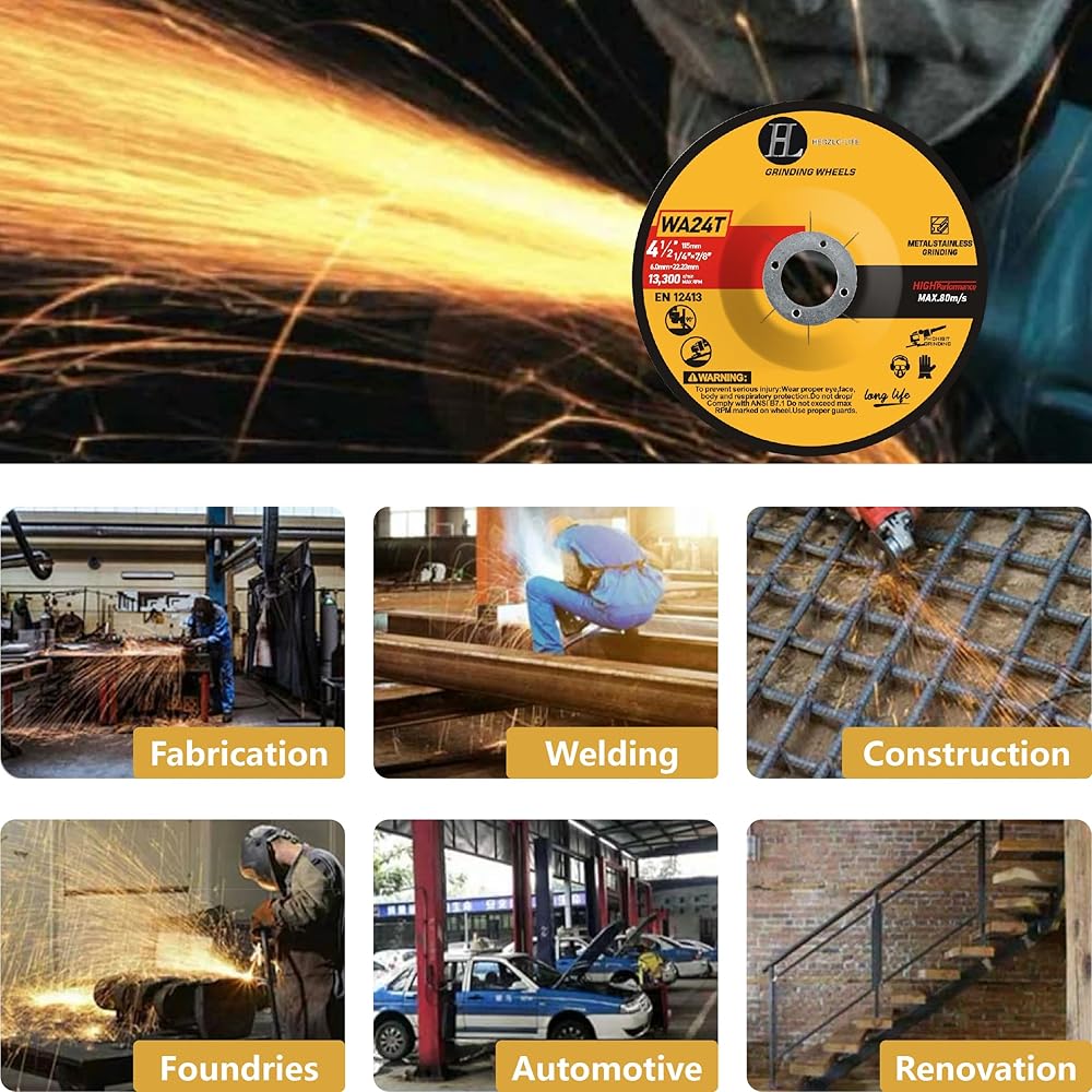 ✅【Multi Use】cutting discs 4 1/2 for angle grinder are specially formulated for fast cutting in iron, pipe, copper, carbon steel, stainless steel, angle steeland all other ferrous metals.They are used in fabrication, welding,construction, foundries, automotive,renovation etc.
