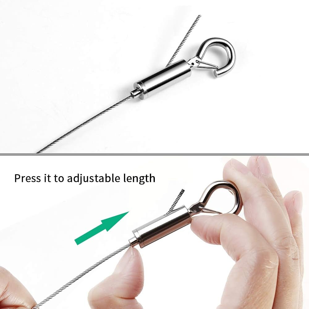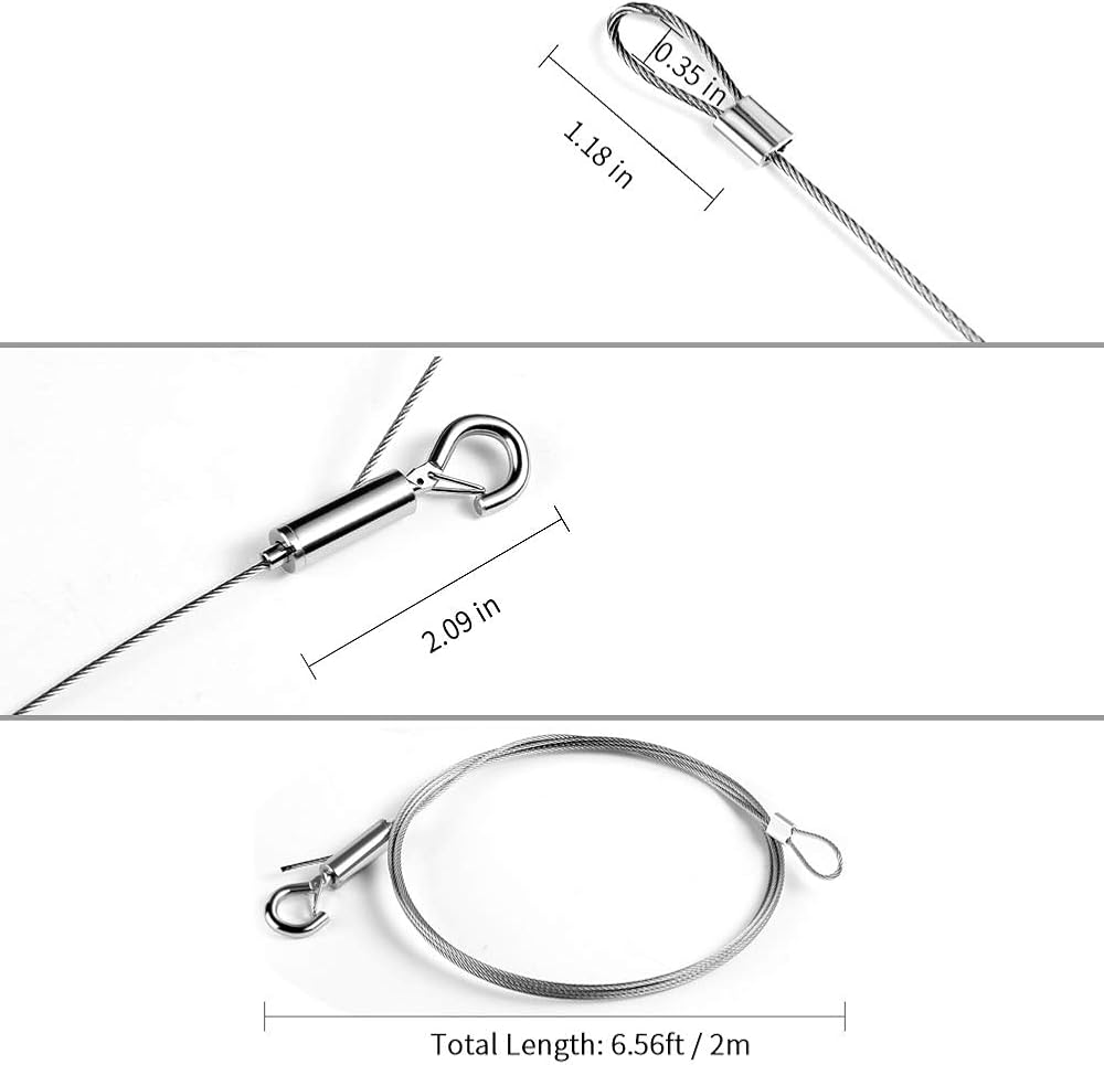 High-Quality Materials: Made from durable stainless steel 304 wire rope and a nickel-plated iron hook, this picture wire hanging kit is resistant to rust and corrosion for long-lasting use.