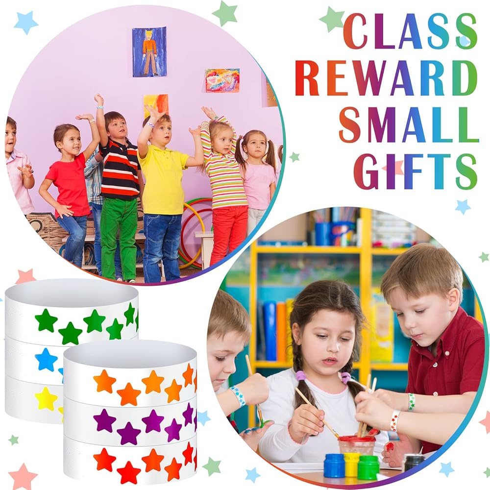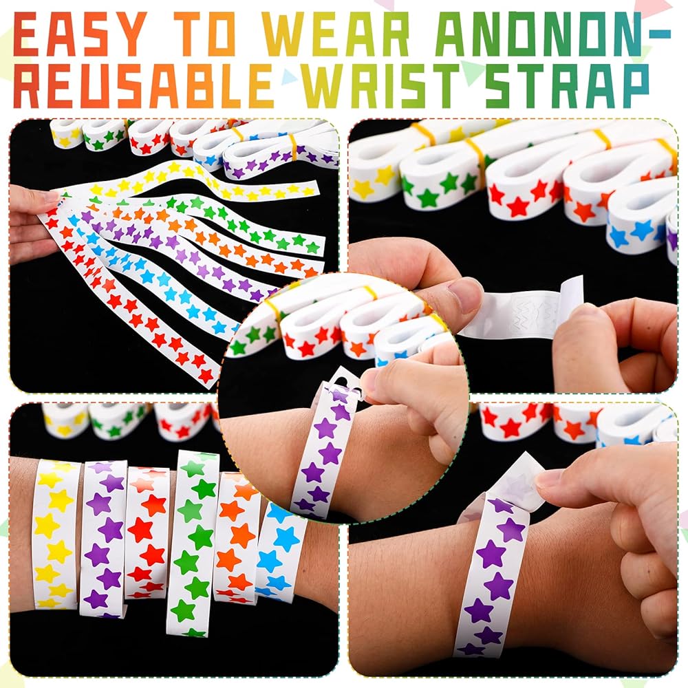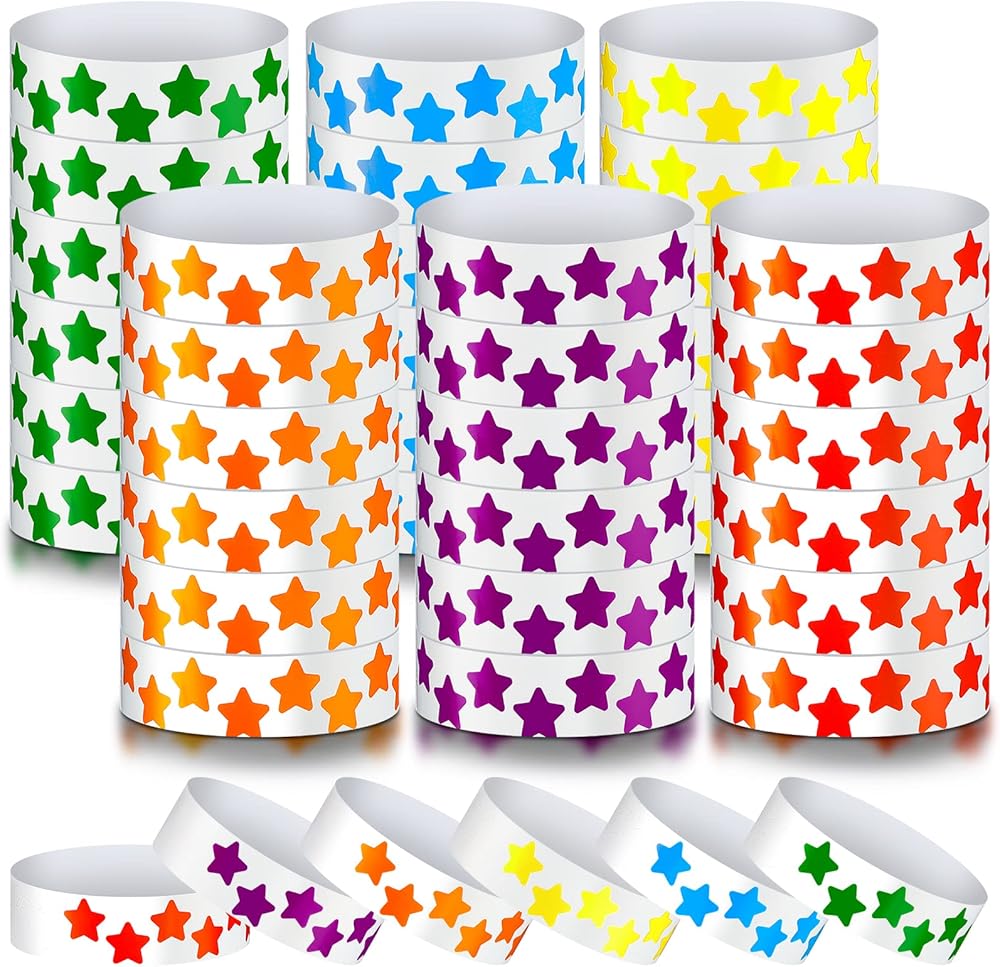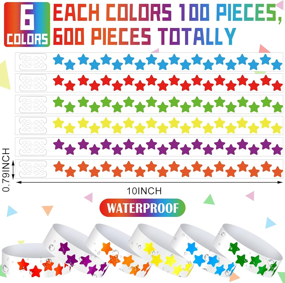 600 Pack Neon Star Wristbands Paper Wristbands for Events Adhesive Event Wristbands Arm Bands for Events Party Wristbands Bracelets for Kids Birthday Wedding Neon Glow Party (Mixed Colors)