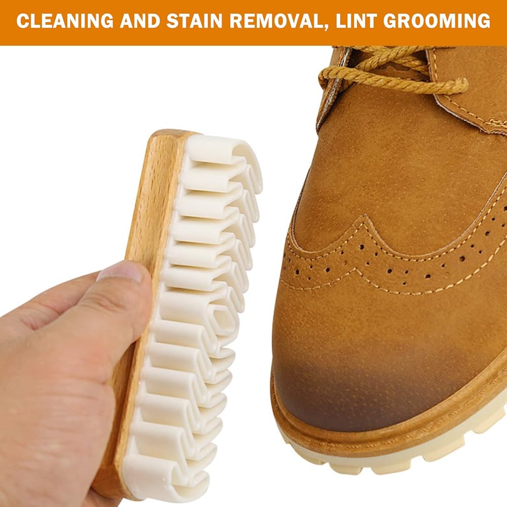 NON-DAMAGING SUEDE LEATHER CLEANER: Our leather cleaning brush is made of high-quality crepe ribbon. This suede nubuck brush helps to remove dust or dirt stuck on the surface of the suede or nubuck. The soft brush head will not cause damage to your suede clothing. This is a leather shoe-cleaning brush that is worth using for a long time.