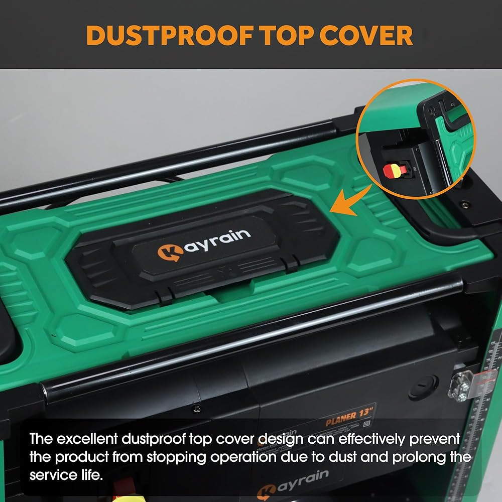 【Comprehensive Dust Protection】Kayrain wood planer has a dust-proof top cover and a motor protection brush cover. The excellent dust-proof design for critical areas prevents the product from stopping due to dust and prolongs its service life