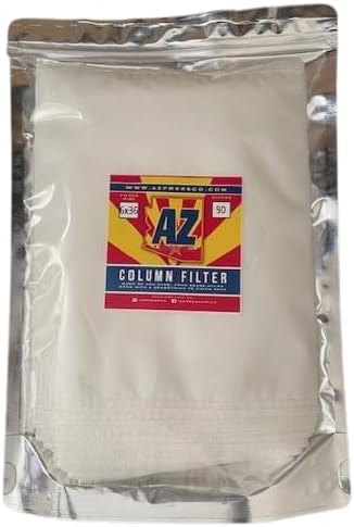AZ Press Co's material column extraction filters are made of 100% food grade nylon monofilament mesh. Each filter has a drawstring to cinch the filter shut at the top. Our material column extraction filters are designed to fit nice and snug inside your material column. Over filling the column filters can cause expansion which we account for in our design process but over filling them can make it more difficult to load the filter into the column. Processes differ but you can load the filter while it's in the column to avoid any issues there. It all depends on what works best for you and your processes.