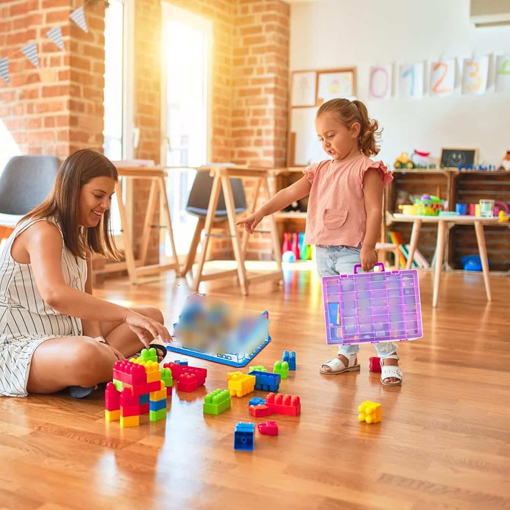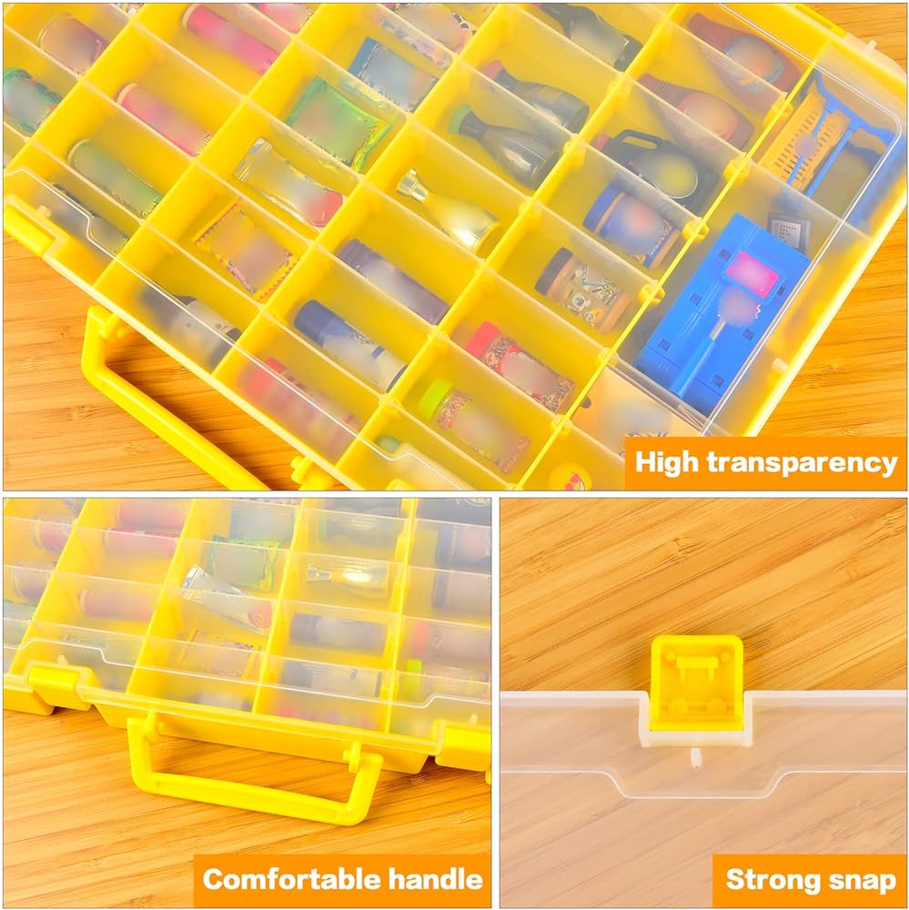 Large capacity carrying case for surprise toys: The toy box for mini brands has 42 movable partitions. You can design the compartment size according to the storage requirements of different sizes for mini brands. The toy boxes for kids can have up to 48 compartments. The hinge design is exquisite and sturdy, allowing 180 degree opening and closing.