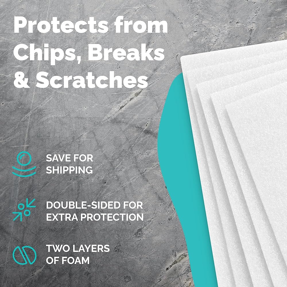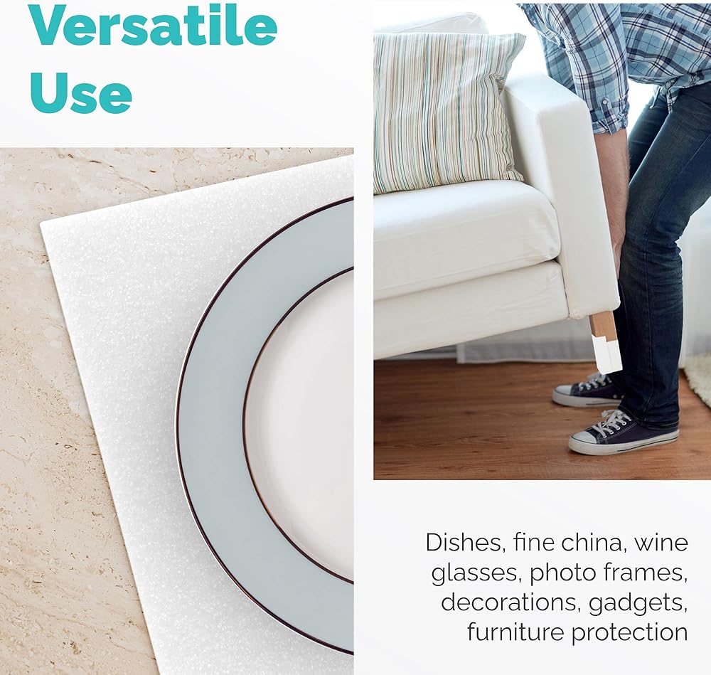 1/8" THICK FOR EXTRA CUSHIONING: Don't settle for competing products that sell a thinner foam with the same dimensions! They want you to believe you're getting the same quality product but you definitely are not! These strong lightweight foam sheets offer both the most protection and the most flexibility, making it easy to wrap virtually all kitchen items of any shape.