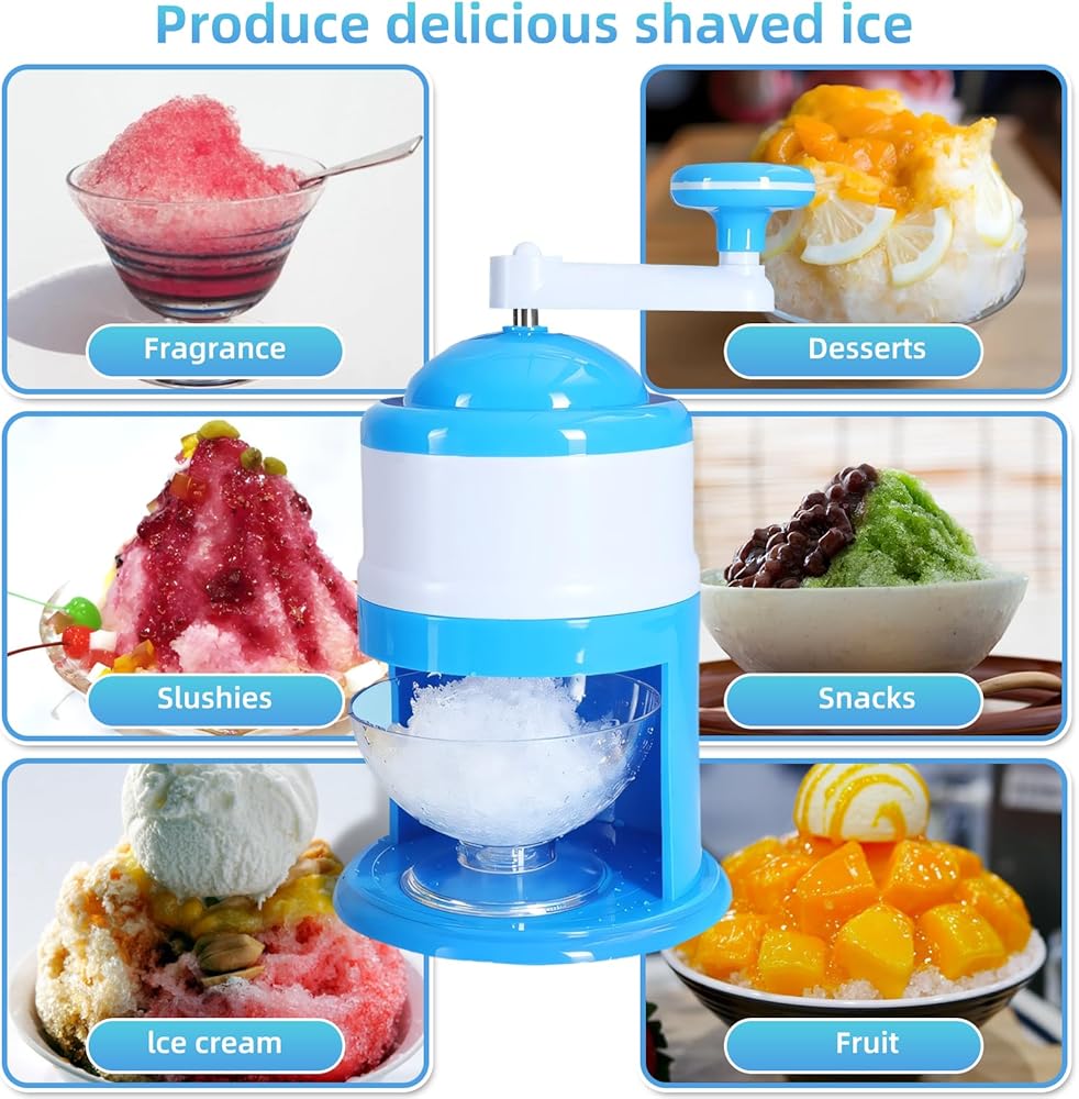 【Durable Blades】This snowcone machines use 304 stainless steel blades, very strong and will not rust. Built-in spring ice press, firmly locks the ice cubes, crushes very finely and quickly. This ice crusher machine for home can be used for a long time.