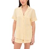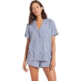 Get a good night's sleep by wearing the Eberjey Nautico Shortie Pj Set. The shirt features a notch collar neckline, short sleeves, front button closure, functional chest pocket, and a straight hemline. The pull-on style shorts have a mid-rise silhoue